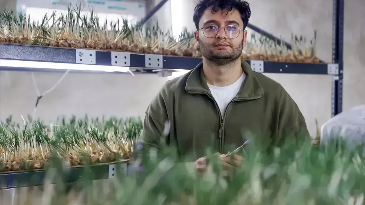 Konya’da 25 yaşındaki ziraat mühendisi Mert Pektaş, yalnızca 14 metrekarelik alanda kurduğu topraksız tarım tesisinde yılda 1 milyon TL gelir hedefleyen safran üretimiyle dikkat çekiyor.
