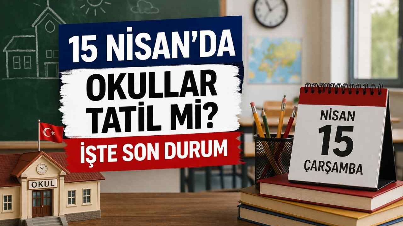 Türkiye genelinde 15 Nisan Çarşamba günü için okulların tatil edilip edilmeyeceği gündemdeki yerini koruyor. Ancak Valilikler ve Milli Eğitim Bakanlığı tarafından şu ana kadar alınmış bir resmi tatil kararı bulunmuyor. Mevcut durumda eğitim-öğretimin ülke genelinde normal şekilde devam etmesi bekleniyor.