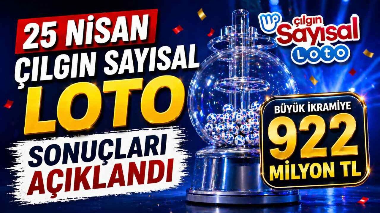Milli Piyango İdaresi tarafından gerçekleştirilen 25 Nisan 2026 Çılgın Sayısal Loto çekilişi sonuçlandı. Türkiye genelinde milyonlarca kişinin takip ettiği çekilişte, büyük ikramiye tutarı dikkat çeken seviyeye ulaştı.