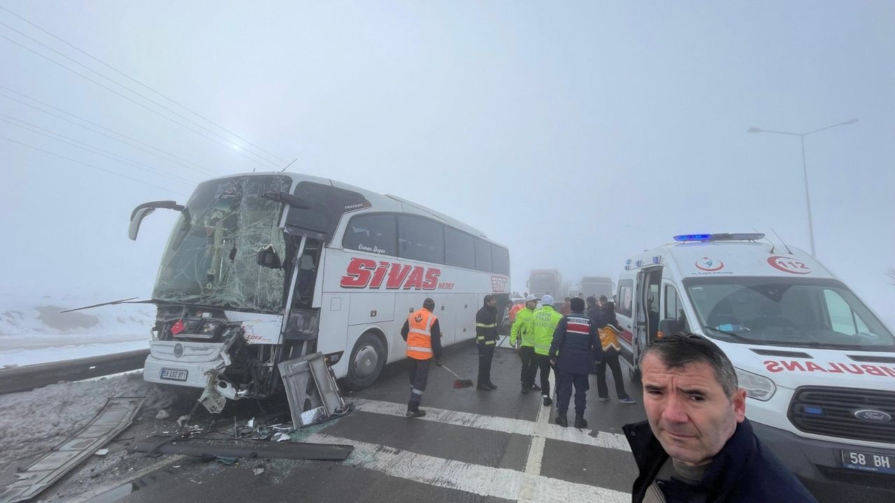 Sisli havada M.S yönetimindeki TIR'a, kavşakta Y.Y yönetimindeki TIR çarptı. Aynı yöne giden yolcu otobüsü ile otomobil de kazaya karıştı. Zincirleme kazada araçlardaki 7 kişi hafif yaralandı. Yaralılar, ambulanslarla hastaneye kaldırıldı. Tedaviye alınan yaralıların durumlarının iyi olduğu öğrenildi. Yolcu otobüsündeki 11 yolcu başka bir otobüse alınarak Sivas'a gönderildi. Kazayla ilgili soruşturma başlatıldı.