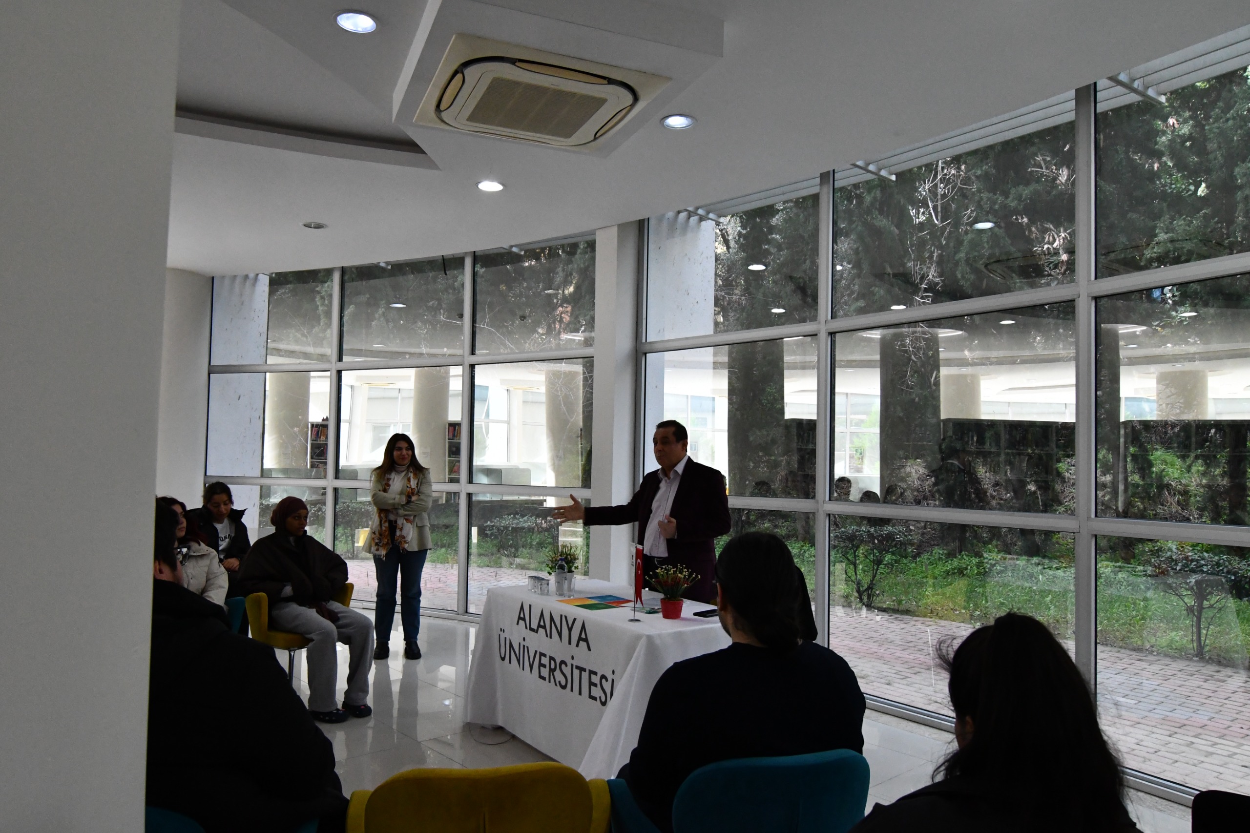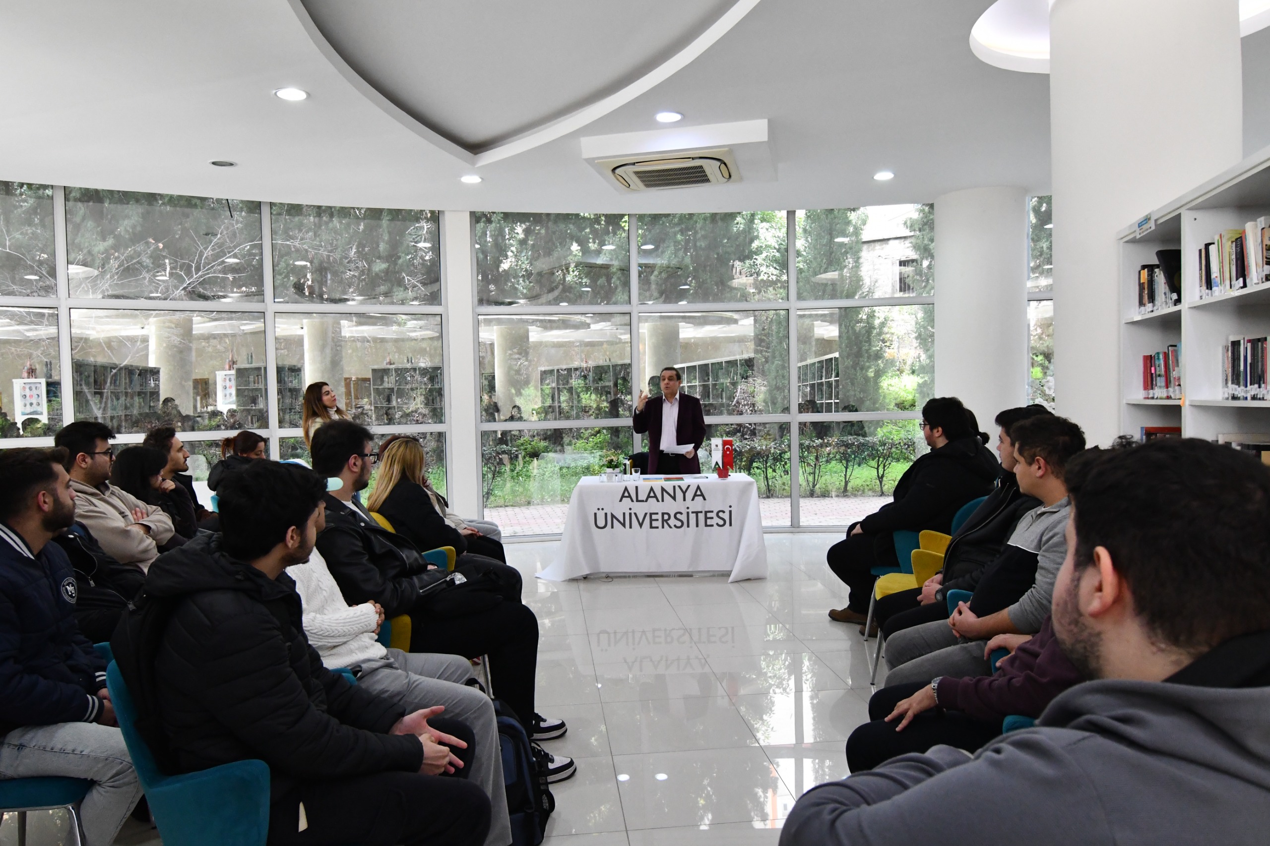 ALANYA Belediyesi Başkan Yardımcısı ve yazar Abdullah Akbaş, dün Alanya Üniversitesi Merkez Kampüs Kemal ve Tayyar Hacıkura Kütüphanesi’nde düzenlenen söyleşi programında öğrenciler ve akademisyenlerle buluştu. Kütüphane Müdürü Aslı Akgül’ün organizasyonuyla gerçekleştirilen ve Akbaş’ın kaleme aldığı Gurbette Kalan Sevda: Bir Ahıska Romanı üzerine yapılan söyleşide, romanın yazım süreci, tarihsel arka planı ve Ahıska Türklerinin sürgünle şekillenen aidiyet mücadelesi ele alındı. Akbaş konuşmasında, edebiyatın toplumsal hafızayı canlı tutmadaki rolüne dikkat çekerek, eserin yalnızca bir roman olmadığını, aynı zamanda kültürel bir tanıklık niteliği taşıdığını vurguladı. Ahıska Türklerinin yaşadığı sürgün travmasının kuşaklar arası aktarımına değinen Akbaş, tarih, kimlik ve göç temalarının romanın merkezinde yer aldığını ifade etti.