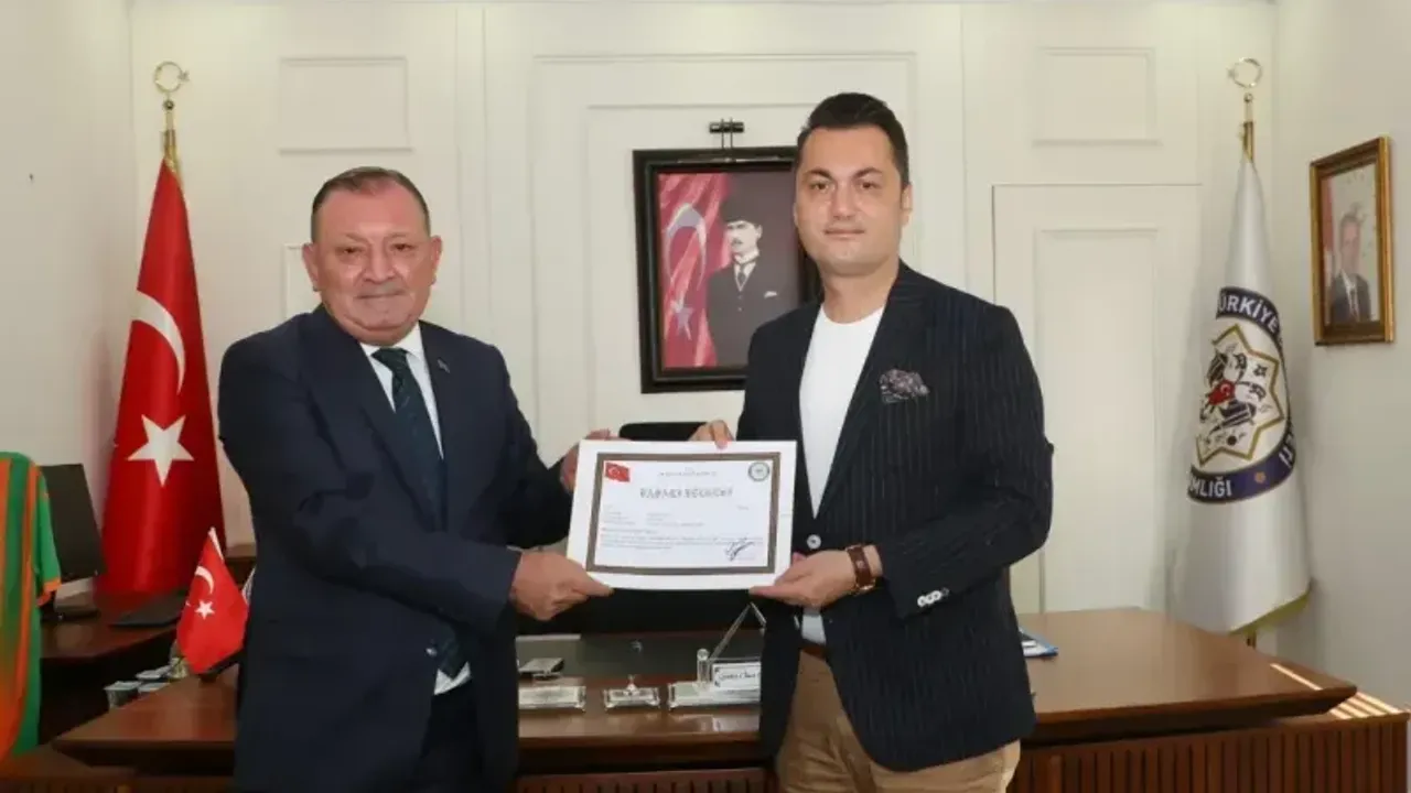 Konya iline atanan Alanya İlçe Tarım ve Orman Müdürü Mehmet Rüzgar, Kaymakam Şakir Öner Öztürk’e veda ziyaretinde bulundu. Öztürk, görev süresi boyunca ilçeye sunduğu çalışmalardan dolayı Mehmet Rüzgar’ı Başarı Belgesi ile taltif ederek yeni görev yerinde aşarılar diledi.
