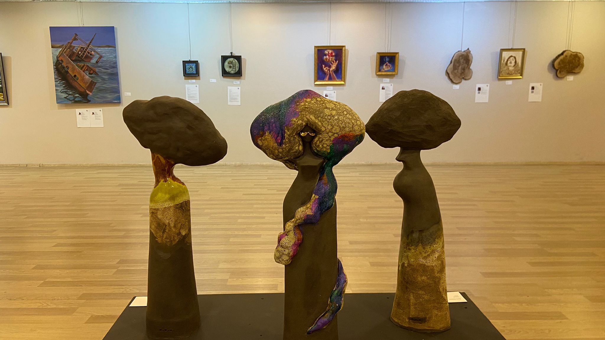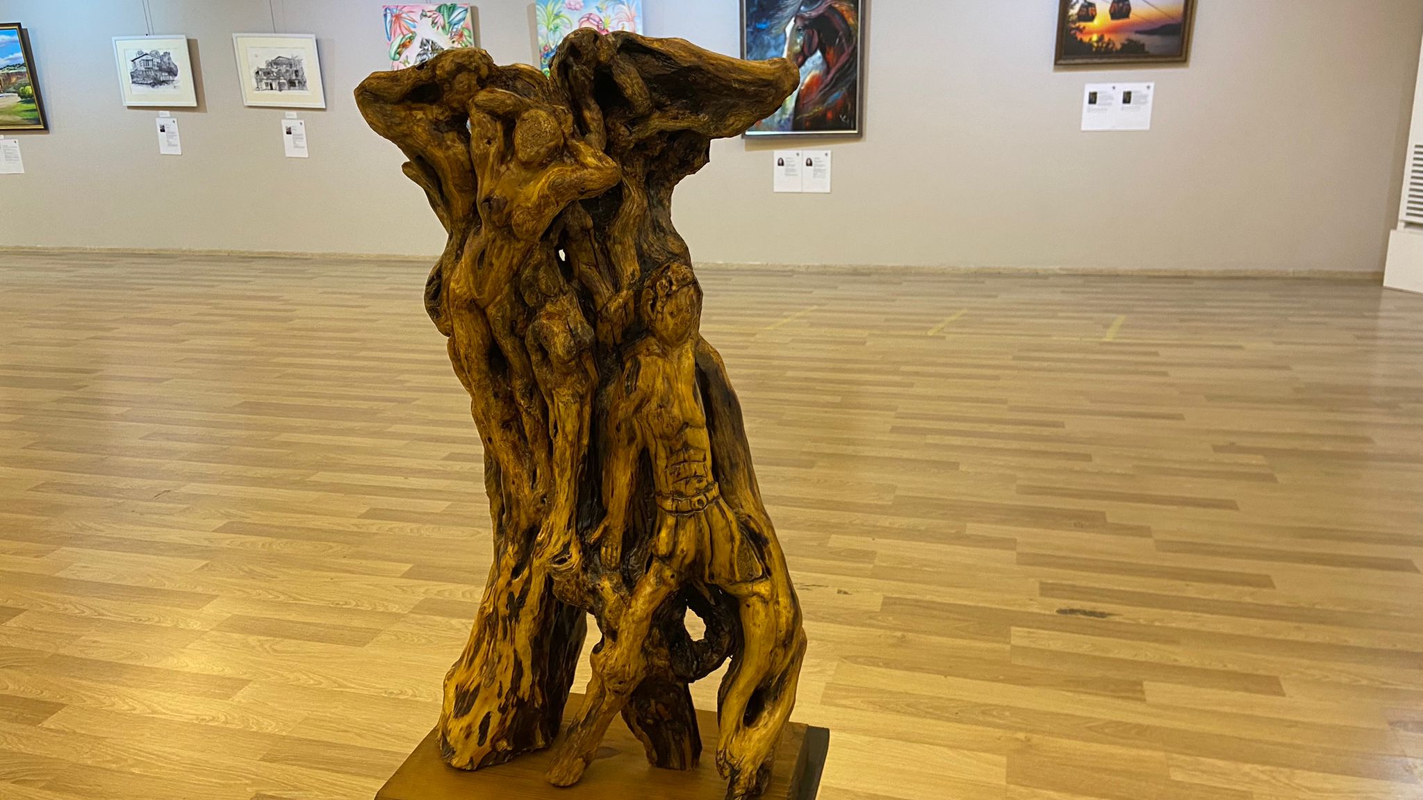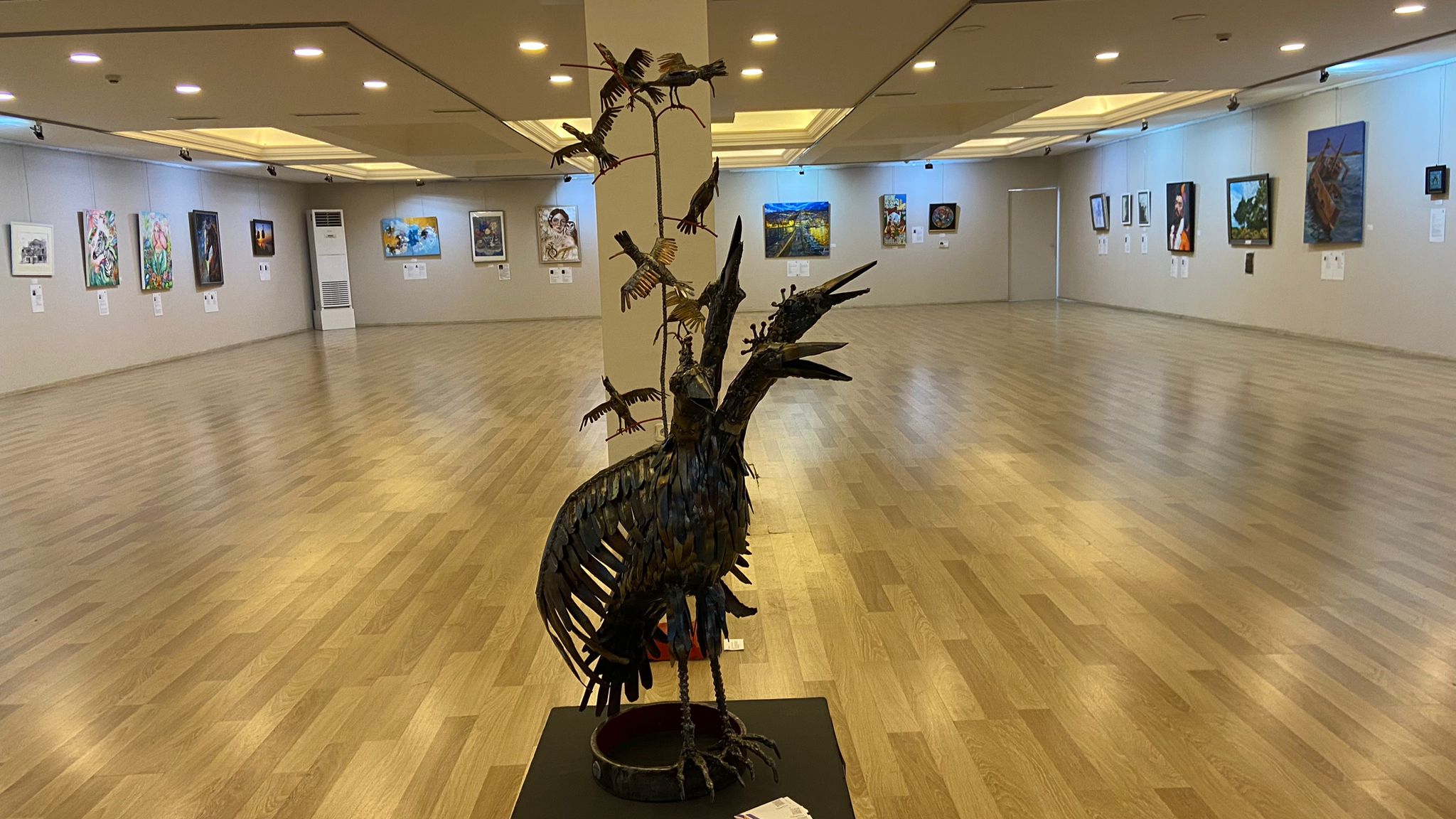 Heykeltraş ve Sanat Eğitimcisi Mustafa Oktay ,“Sergimiz Yeni Alanyalı’lar platformu çatısı altında yapılmış bir sergi. Yaklaşık 3 aylık bir çalışma bu. 3 aylık bir emek var. Gönderilen portfolyolar tek tek incelendi. Şu an sergimizde 10 farklı ülkeden 30 sanatçı ve 50 iş var. Plastik sanatlar karma sergisi diye geçiyor. Plastik sanatlar içerisinde biz her disiplini bulundurmaya çalışıyoruz. Her disiplinin en iyi örnekleri sergimizde. Yağlı boya, guaj boya, ahşap yakmalar, seramik çalışmaları, metal heykeller ve ahşap heykel. Bu bir anlamda da plastik çeşitliliğini ortaya koymaktı. 2 çalışmam var. Birisi Her Kafadan Ses, bu çalışma mayıs ayında bitti ama ilk kez sergileniyor. Metal kaynak tekniğiyle yaptığım bir çalışma. Diğer çalışmamın adı da Hayatımın Ağacı, bu çalışmada bakır ve demiri kullandım” dedi. (Hatice NERGİZ)