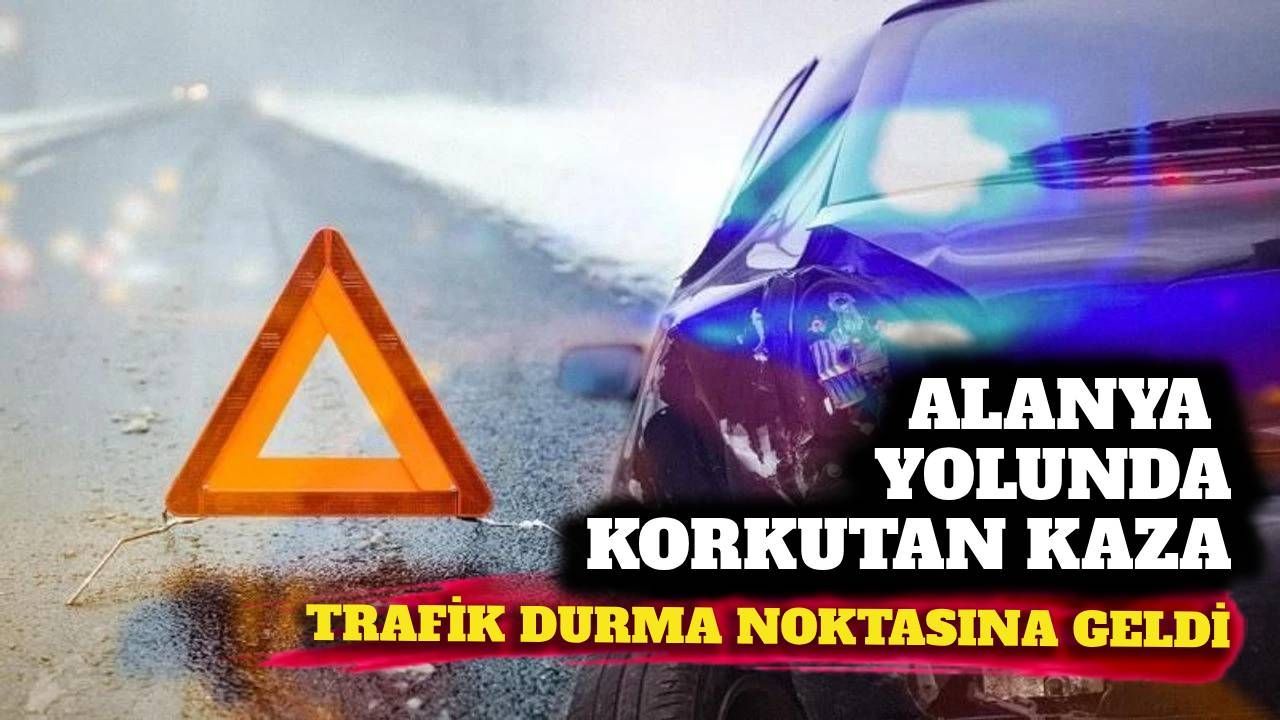 Manavgat–Alanya D-400 karayolunda otomobilin yol süpürme aracına arkadan çarpmasıyla trafik uzun süre tek şeritten kontrollü şekilde ilerledi.
