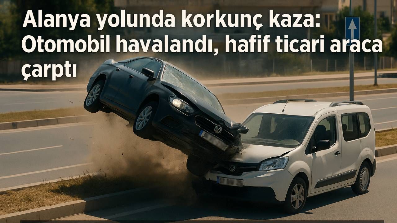 Alanya-Manavgat– Antalya D-400 Karayolu’nda bir otomobilin refüje çarpıp havalanarak karşı şeritteki hafif ticari araca çarpması sonucu 1 kişi yaralandı. Olay anı güvenlik kamerasınca saniye saniye kaydedildi.