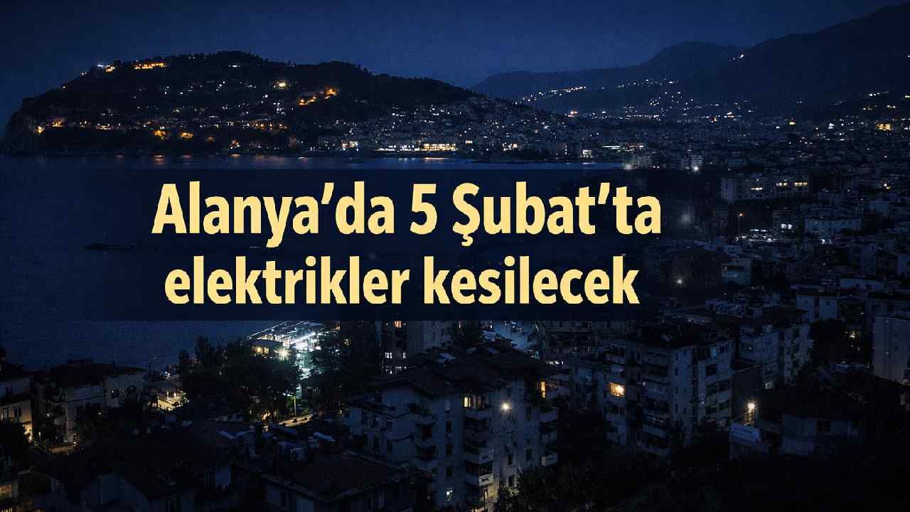 Alanya’da 5 Şubat 2026 Perşembe günü planlı elektrik kesintileri yapılacak. Okurcalar’dan Şekerhane’ye kadar birçok mahalle saatlerce elektriksiz kalacak.
