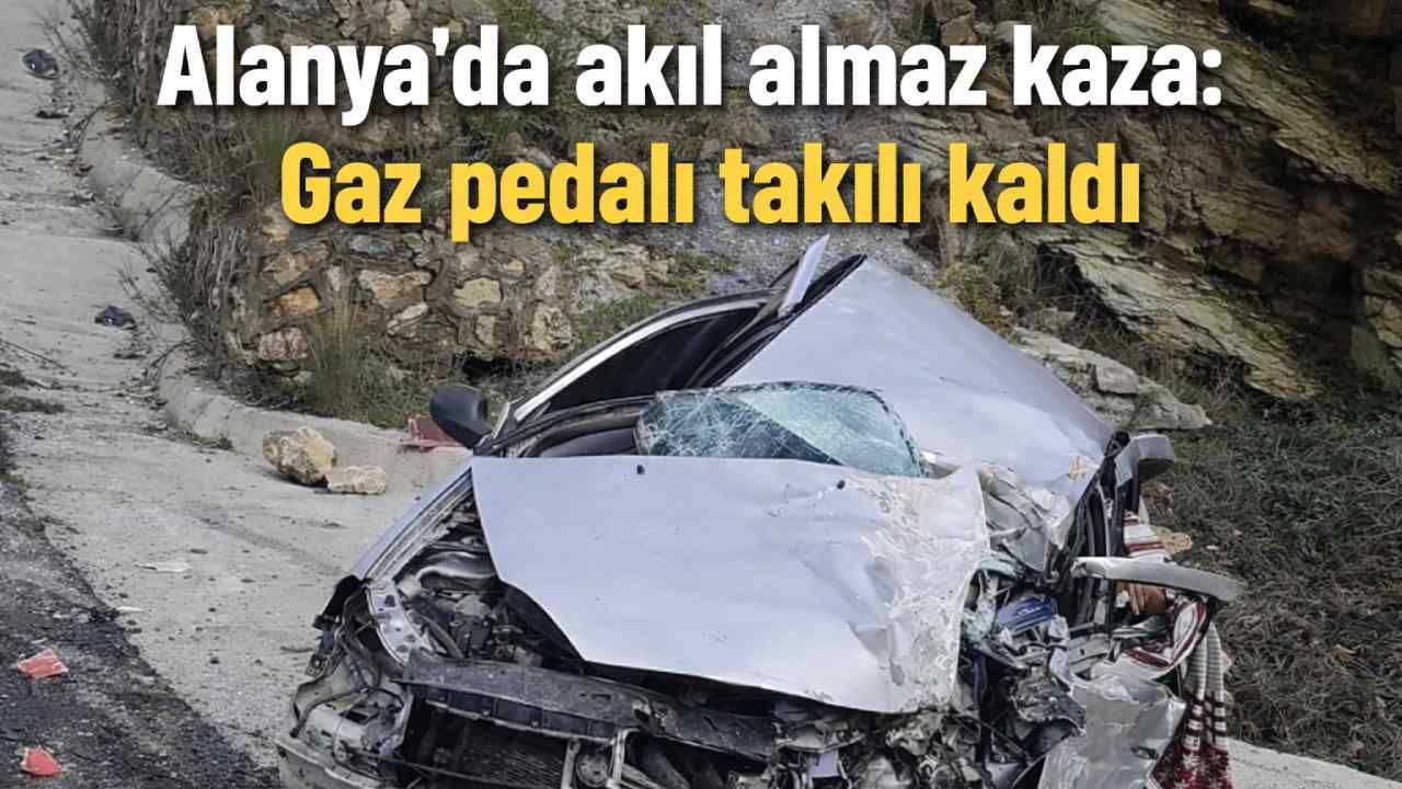 Alanya’nın Kestel Mahallesi’nde meydana gelen kazada, gaz pedalının takılı kaldığı iddia edilen otomobil kontrolden çıkarak duvara çarptı. Çarpmanın etkisiyle araçta maddi hasar oluşurken, sürücü yaralandı.