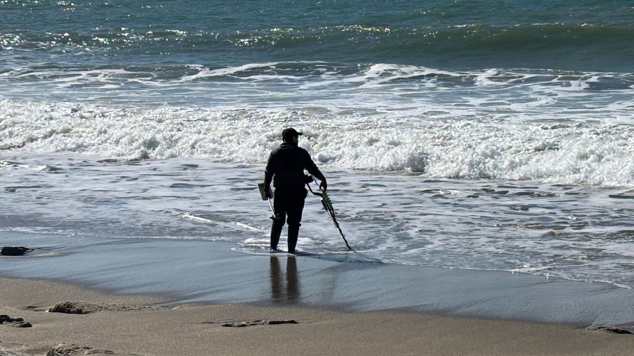 Alanya’da son günlerde etkili olan aşırı yağış ve fırtına, denizdeki kumu adeta altüst etti. Bazı define avcıları, denizdeki dalgalara aldırış etmeden ellerinde metal dedektörleriyle sahile vuran altın ve değerli eşyaları aradı. Sahil boyunca gezinen define avcıları, özellikle altın, takı ve küçük eşyaların peşine düştü. (Hatice NERGİZ)