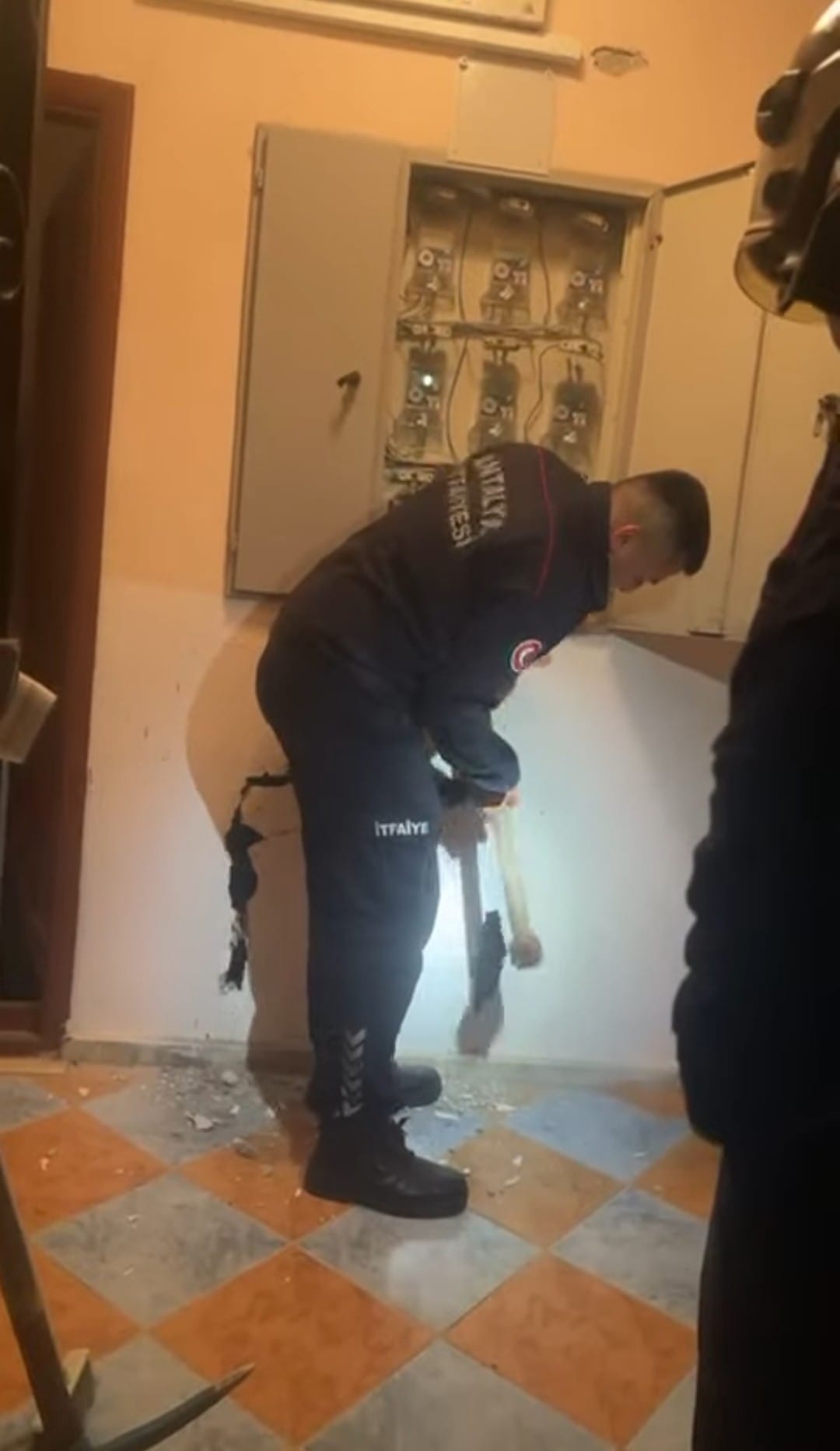 Kedinin elektrik panosunun bulunduğu duvarın arkasında olduğunun belirlenmesi üzerine, durum vakit kaybetmeden itfaiye ekiplerine bildirildi.