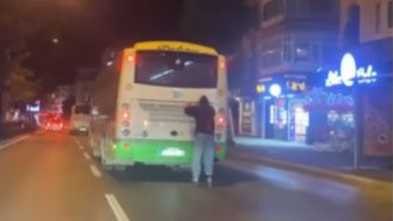 Alanya’da 25 Metrelik Yol olarak da bilinen Şevket Tokuş Caddesinde pateniyle Halk Otobüsüne tutunarak ilerleyen bir genç hem ölüme meydan okudu hem de trafiği tehlikeye attı. Gencin tehlikeli yolculuğunu görenler ‘kendini düşünmüyorsan geride kalacak anne babanı, yakınlarını düşün be evladım’ sözleriyle serzenişte bulundu.