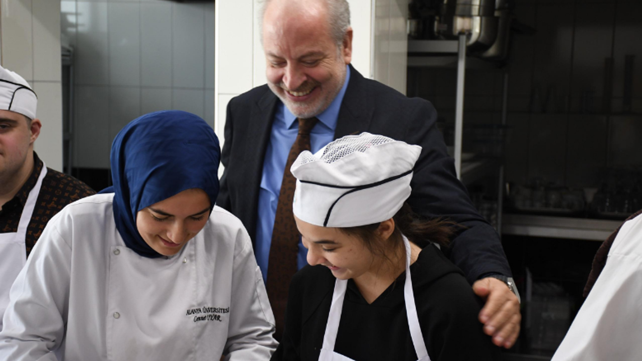 Etkinliğe, Üniversite Rektörü Prof. Dr. Turan Sağer, Alanya Belediye Başkan Vekili Nazmi Zavlak, Alanya Belediye Başkan Danışmanı Faruk Konukçu, Belediye Meclis Üyeleri Halime Ceylan, Haydar Uyar ve İrem Yunusoğlu ile Alanya Belediyesi Sosyal Yardım İşleri Müdürü Hüseyin Doğan katılım sağladı. Protokol üyeleri, öğrenciler ve özel gereksinimli bireylerin birlikte çalıştığı mutfağı gezerek yapılan ürünleri inceledi; etkinliğe katkı sunan akademisyenlerle sohbet etti.
