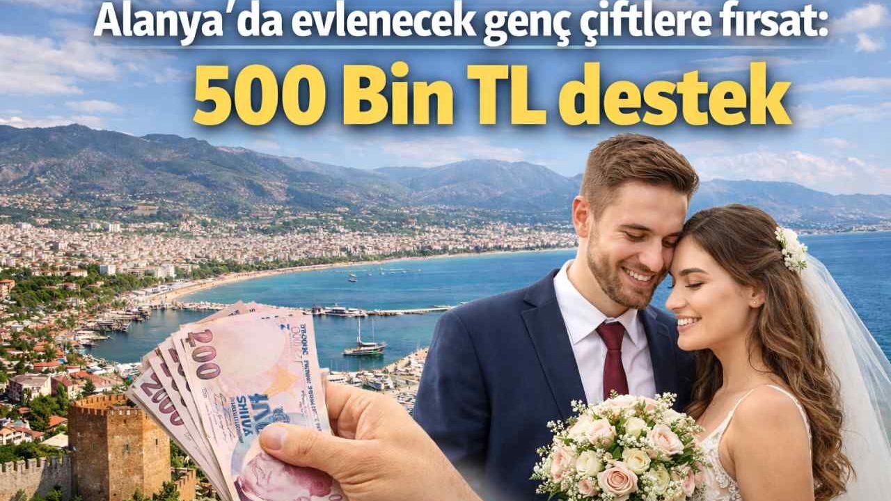 Alanya’da evlilik hazırlığı yapan gençler için önemli bir sosyal destek programı açıklandı. Aile ve Sosyal Hizmetler Bakanlığı tarafından duyurulan yeni uygulamaya göre, evlenme hazırlığında olan ve gerekli şartları karşılayan çiftlere 500 bin TL’ye kadar maddi destek sağlanacak. Program kapsamında başvurular 14 Mart 2026 tarihinden itibaren e-Devlet sistemi üzerinden yapılacak.