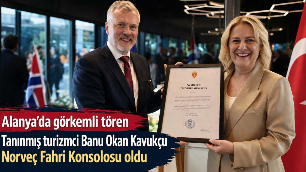 Alanya'da bölgedeki yerleşik yabancıları ve dev turizm pazarını yakından ilgilendiren kritik diplomasi adımı nihayet atıldı. İki ülke arasındaki ilişkilerde yeni bir sayfa açması beklenen Norveç Krallığı Alanya Fahri Konsolosluk Belgesi, düzenlenen dikkat çekici bir törenle sahibini buldu. Bölgedeki İskandinav turist akışını ve yerel ekonomiyi de etkileyecek bu önemli görevi, tanınmış turizmci Banu Okan Kavukçu resmen devraldı.