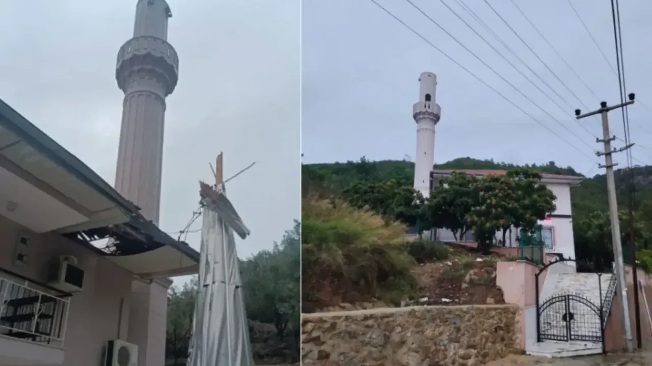 ALANYA’NIN Elikesik Mahallesi’nde dün öğle saatlerinde etkili olan sağanak yağış ve fırtınanın ardından oluşan hortum, bölgede paniğe neden oldu. Hortumun vurduğu yerler arasında bulunan Kulular Camii de hasar aldı. Şiddetli rüzgâr sonucu caminin minaresi saat 15.00 sıralarında büyük bir gürültüyle yıkıldı. Minarenin yıkılması sırasında camide kimsenin olmaması olası bir faciayı önledi. Olayda can kaybı ya da yaralanma meydana gelmezken, camide maddi hasar oluştu. Yetkililer bölgede hasar tespit çalışmalarının sürdüğünü, vatandaşların kuvvetli rüzgâr ve yağışlara karşı dikkatli olması gerektiğini belirtti. (Şerife ÇOBAN)