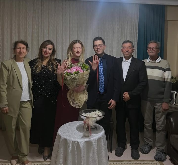 ALANYA'NIN tanınmış simalarından, Cüce Kereste sahibi Latif Cüce'nin babasının adını taşıyan büyük oğlu Psikolog Hasan Cüce, bir süredir birlikte olduğu hemşire sevgilisi Ülkü Ülgen ile evlilik yolunda ilk adımı attı. Kız isteme merasimi için Kuşadası'na giden Cüce ailesi, geleneklere uygun şekilde hem kız istedi hem de yüzük taktı. Aile arasında gerçekleşen ve samimi bir ortamda yapılan törende, iki ailenin yakınları bir araya geldi. Yüzüklerin takılmasının ardından genç çiftin mutluluğu gözlerinden okunurken, tören günün anısına çekilen hatıra fotoğraflarıyla sona erdi.