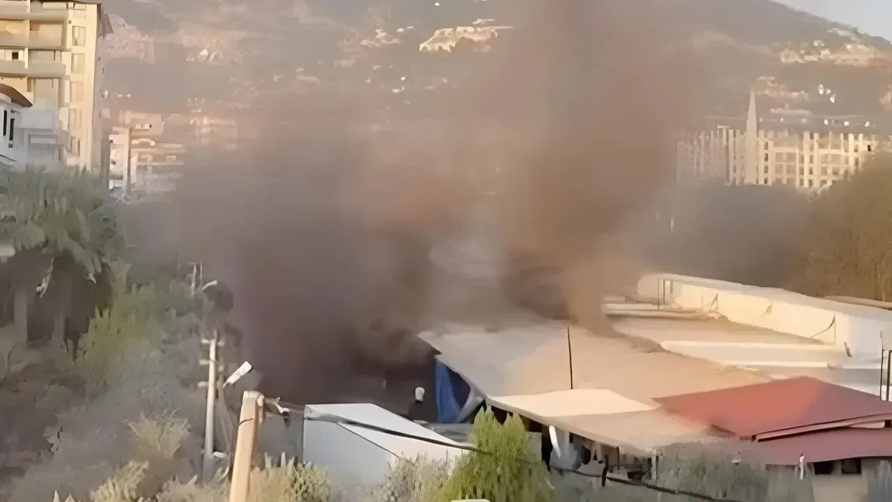 Alanya Toptancı Hali'nde çıkan yangın paniğe neden oldu. Alevlerden yükselen yoğun siyah duman gökyüzünü kaplarken, ekiplerin hızlı müdahalesi sayesinde yangın büyümeden söndürüldü.