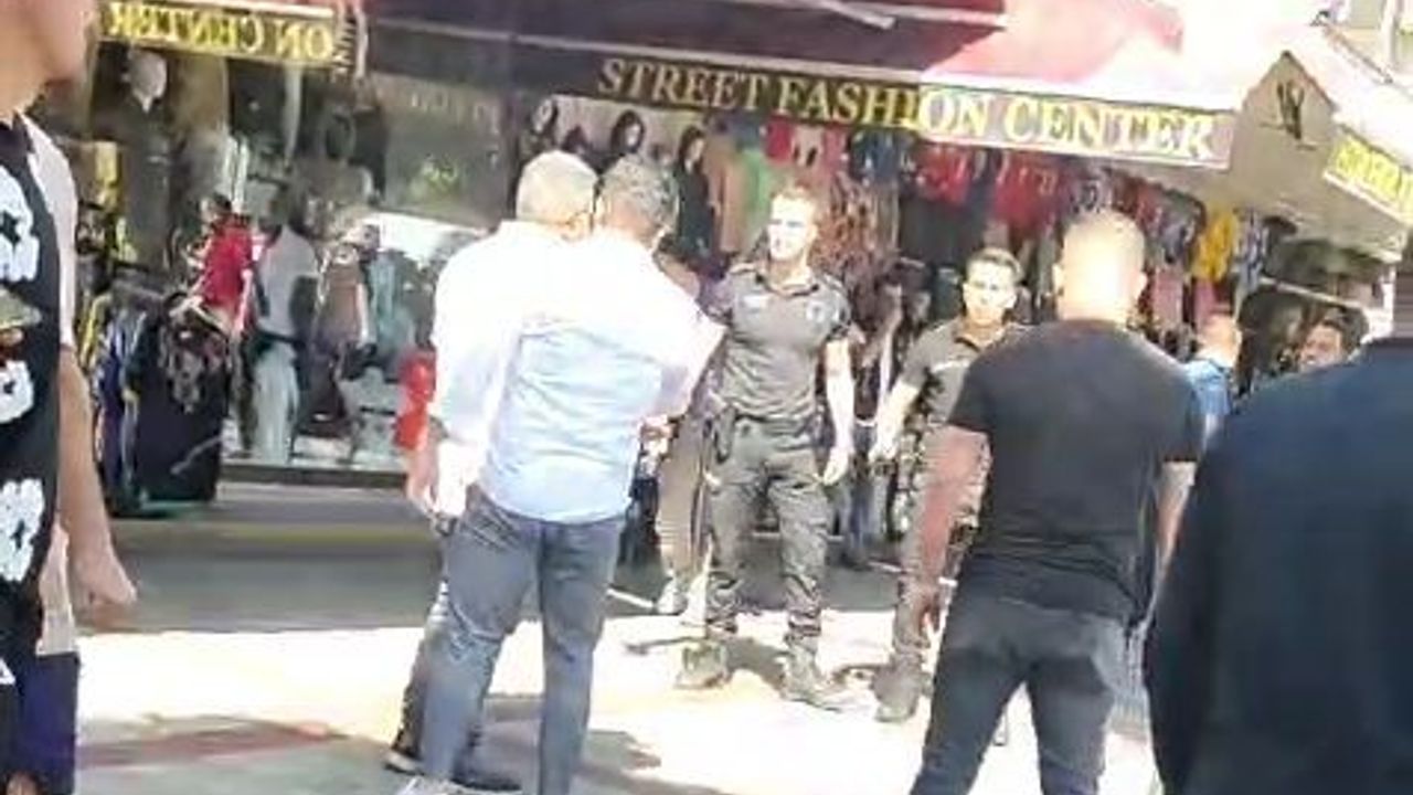 Esnafın toplanıp tepki vermesi üzerine polis biber gaze sıktı.