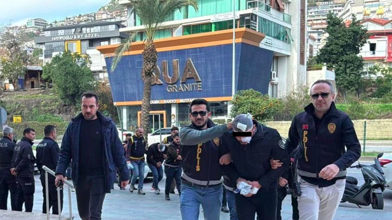 Emniyetteki sorgu ve işlemleri tamamlanan 7 şüpheli, bugün öğle saatlerinde geniş güvenlik önlemleri altında Alanya Adliyesi’ne getirildi. Sargılar içindeki şüphelilerin savcılıktaki işlemleri devam ediyor.