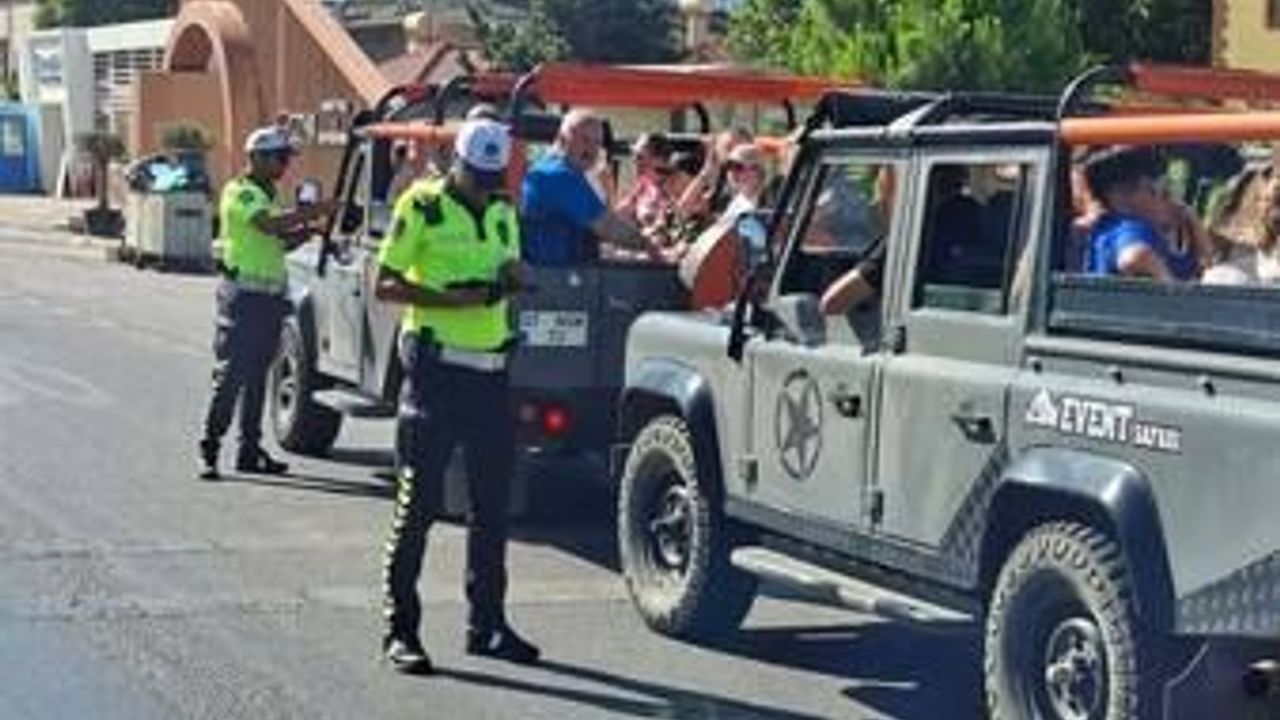 YAPILAN denetimlerde, 93 safari aracı incelendi. İncelemelerde 38 safari aracına çeşitli trafik kuralları ihlallerinden cezai işlem uygulandı. Denetimler sırasında sürücülere, hem kendi güvenlikleri hem de taşıdıkları misafirlerin can güvenliği için uymaları gereken kurallar hakkında gerekli bilgilendirmeler yapıldı. (Mazlume GÖKTAŞ)