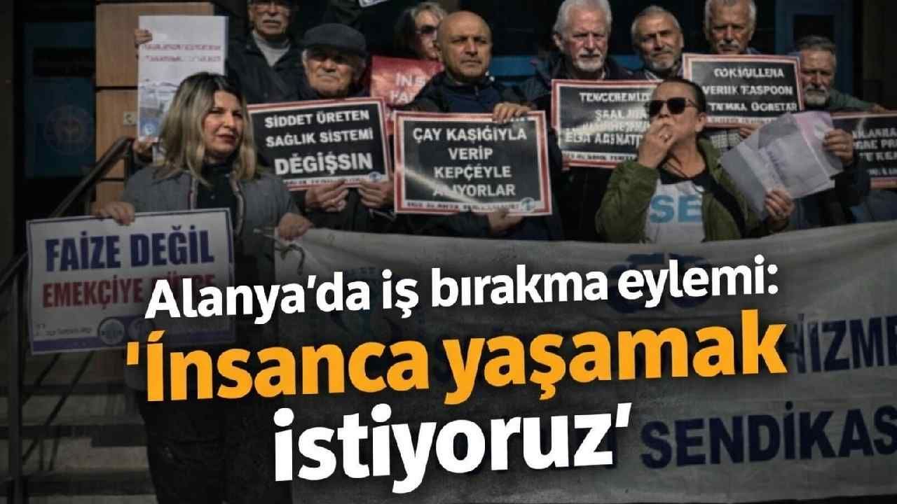 Alanya’da sağlık ve sosyal hizmet emekçileri, düşük ücretler ve hızla artan yaşam maliyetlerine dikkat çekmek için iş bıraktı. Emekçiler, ek zam ve insanca yaşam koşulları talep etti.