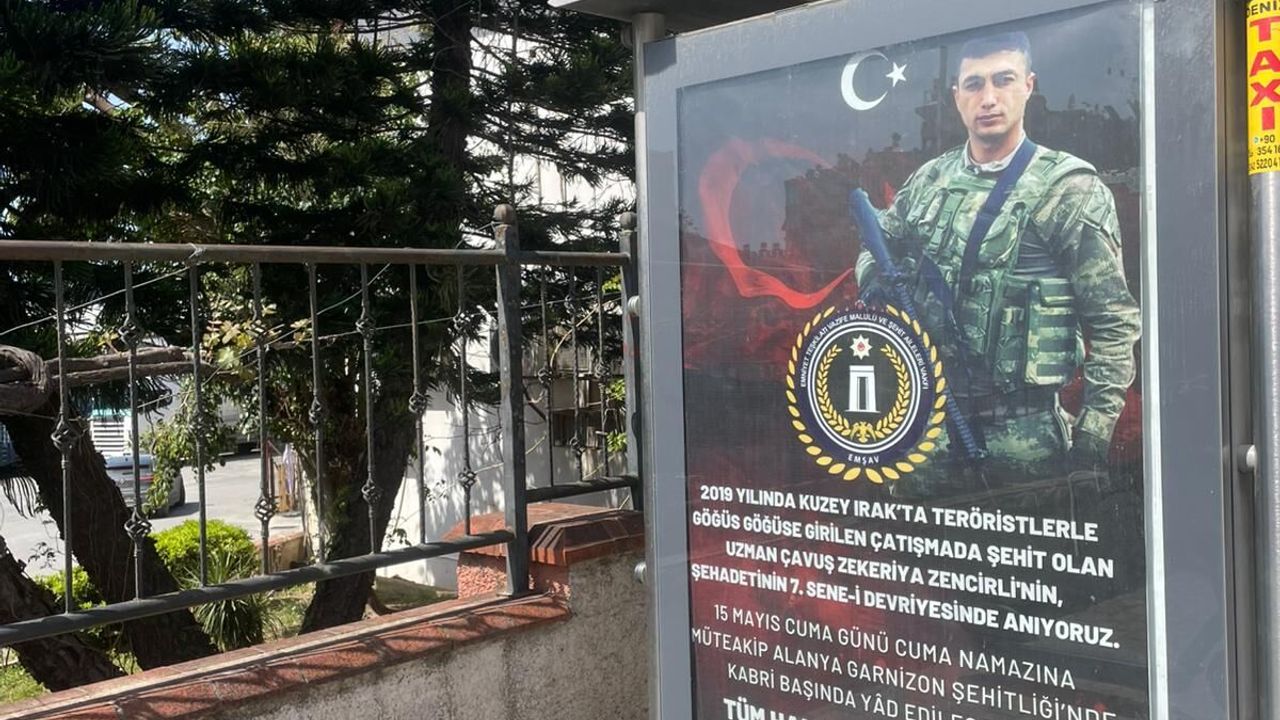 EMŞAV Alanya İlçe Başkanlığı, şehrin dört bir yanında otobüs duraklarına astığı afişlerle şehit Uzman Çavuş Zekeriya Zencirli’nin anma programına vatandaşları davet etti