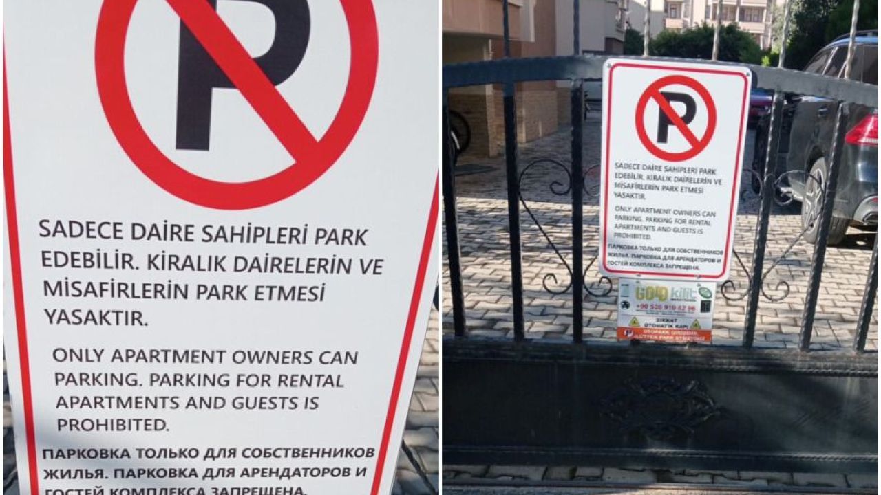 Alanya'nın gözde mahallesi Mahmutlar'da bir sitenin girişi, site yönetiminin üç dilde astığı tartışmalı bir kararla gündeme oturdu. Türkçe, İngilizce ve Rusça yazılı "Sadece daire sahipleri park edebilir, kiralık dairelerin ve misafirlerin park etmesi yasaktır" şeklindeki tabela, kiracıların haklarının kısıtlanması yönündeki karara tepki yağmasına neden oldu.