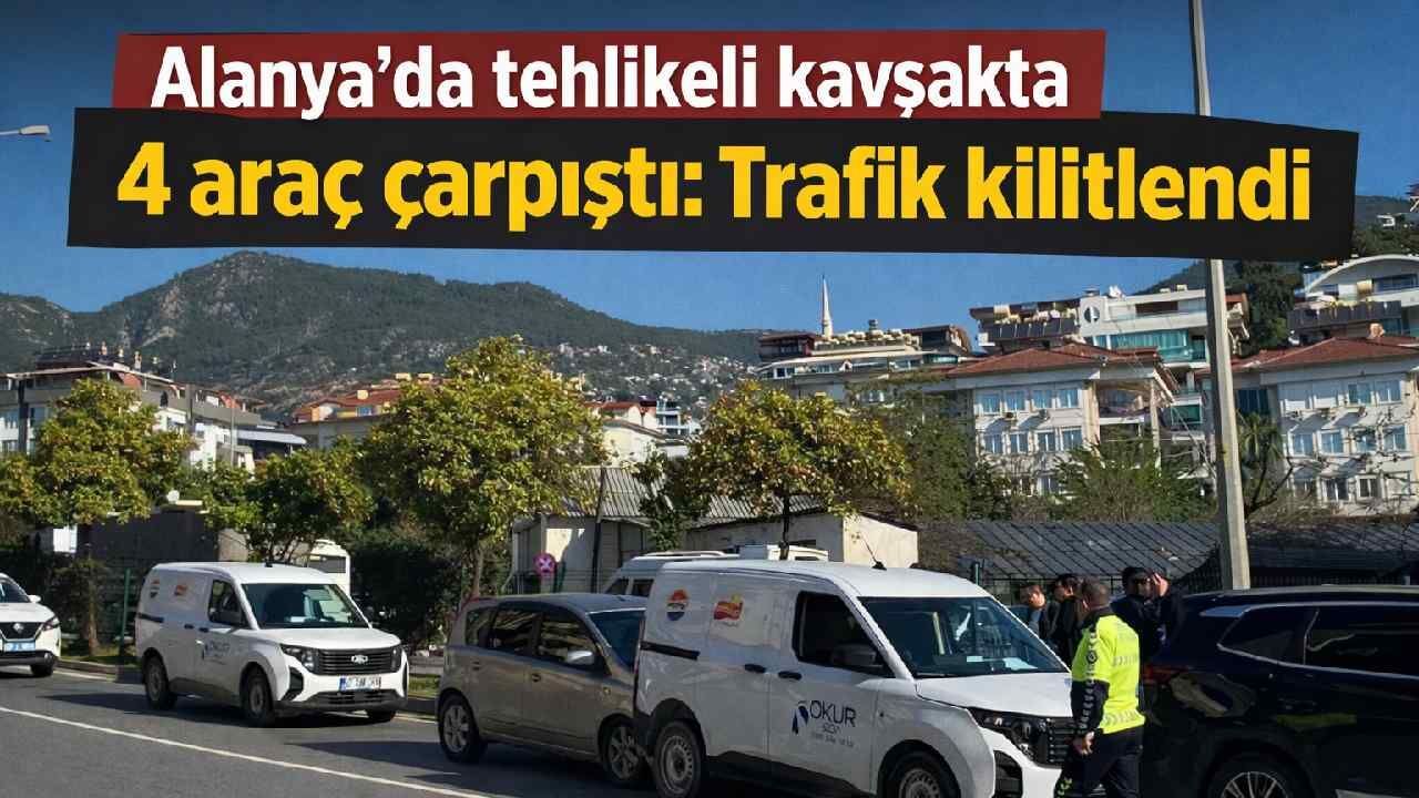 Alanya’da Yayla Yolu ile Adliye Kavşağı arasındaki riskli bölgede meydana gelen kazada 4 araç çarpıştı, trafikte kısa süreli yoğunluk oluştu