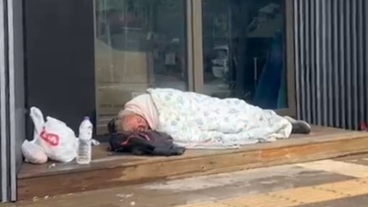 Alanya’nın en işlek bölgelerinden Hacet Meydanında vatandaşların cep telefonu kameralarına yansıyan görüntülerde evsiz olduğu tahmin edilen bir vatandaşın meydanda inşası devam eden bir yapının kenarına sığındığı ve yağmurlu havada yorgana sarılı halde yerde yattığı anlar görenlerin yüreğini sızlattı. Görüntüleri Yeni Alanya İhbar Hattı’na ulaştıran vatandaşlar, yetkililerden yardım istedi. (Mehmet AL)