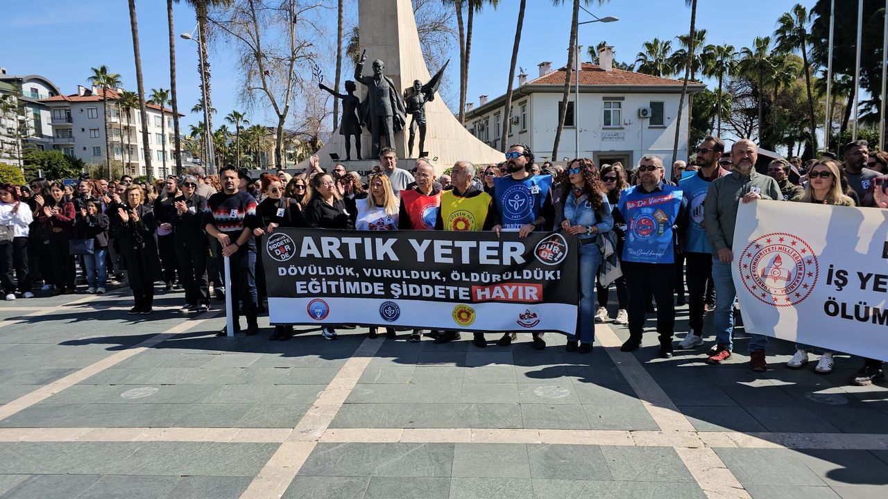 İSTANBUL’UN Çekmeköy ilçesinde bulunan Taşdelen Borsa İstanbul Mesleki ve Teknik Anadolu Lisesi’nde 11. sınıf öğrencisi F.S.B., okulda 2 öğretmen ve 1 öğrenciyi bıçakladı. Saldırının ardından yaralılar hastaneye kaldırılırken, saldırgan öğrenci gözaltına alındı. Olayda öğretmen Fatma Nur Çelik yaşamını yitirdi. Olayın ardından Alanya’daki eğitimciler de duruma tepki gösterdi. Dün Alanya Anıtı önünde bir araya gelen eğitim sendikaları ortak basın açıklaması yaptı. Açıklamaya katılanlar arasında Eğitim İş İlçe Temsilcilik Başkanı Hüseyin Zeybek, Eğitim Sen Şube Başkanı Hüseyin Erdem, Hürriyetçi Eğitim Sen Şube Başkanı Birkan Şam ve Anadolu Eğitim Sen’den Kadriye Demirel yer aldı. Yapılan ortak basın açıklamasında şu ifadelere yer verildi: