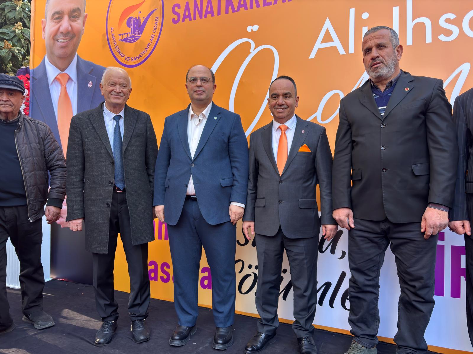 Alanya Esnaf ve Sanatkârlar Odası (ALESO) Başkan Vekili ve Başkan Adayı Ali İhsan Özdemir, seçim ofisinin açılışını yoğun katılımlı bir törenle gerçekleştirdi. Açılışa AK Parti İlçe Başkanı Mehmet Şarani Tavlı, İYİ Parti İlçe Başkanı Hilmi Er, Alanya Ziraat Odası Başkanı Tahir Göktepe, Alanya Esnaf ve Sanatkârlar Odası (ALESO) Başkanı Nuri Demir, Alanya Esnaf ve Sanatkârlar Odası (ALESO) başkan adayları Fatih Nizam, Duran Şimşek ve çok sayıda davetli katıldı. Açılış konuşmalarının ardından dua okunarak kurdele kesimi gerçekleştirildi. Açılışta konuşan Alanya Esnaf ve Sanatkârlar Odası (ALESO) Başkan Vekili ve Başkan Adayı Ali İhsan Özdemir, “Esnaf için ulaşılabilir, adil ve çözüm odaklı oda anlayışıyla yola çıktık. Ortak akıl ve samimiyetle çalışacağız” dedi.