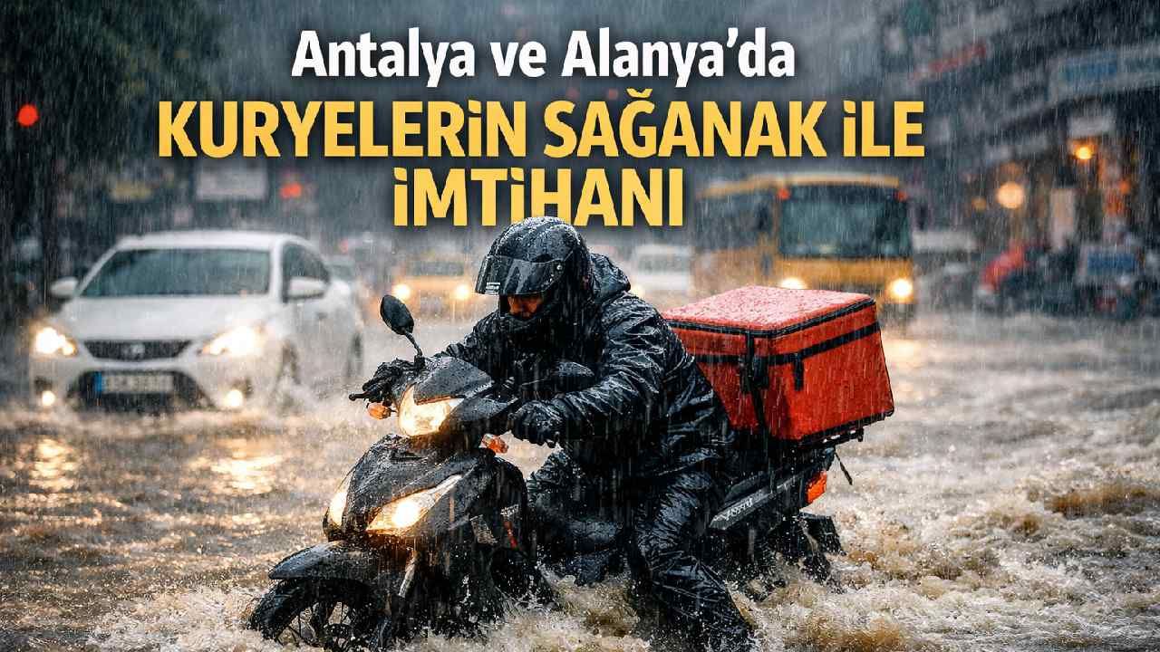 Antalya ve Alanya’da etkili olan kuvvetli sağanak yağış, kent içi ulaşımı zorlaştırırken en çok etkilenen gruplardan biri yine motorlu kuryeler oldu. Gün boyu aralıklarla şiddetini artıran yağmur nedeniyle birçok cadde ve sokakta su birikintileri oluştu, bazı noktalar kısa süreliğine göle döndü.