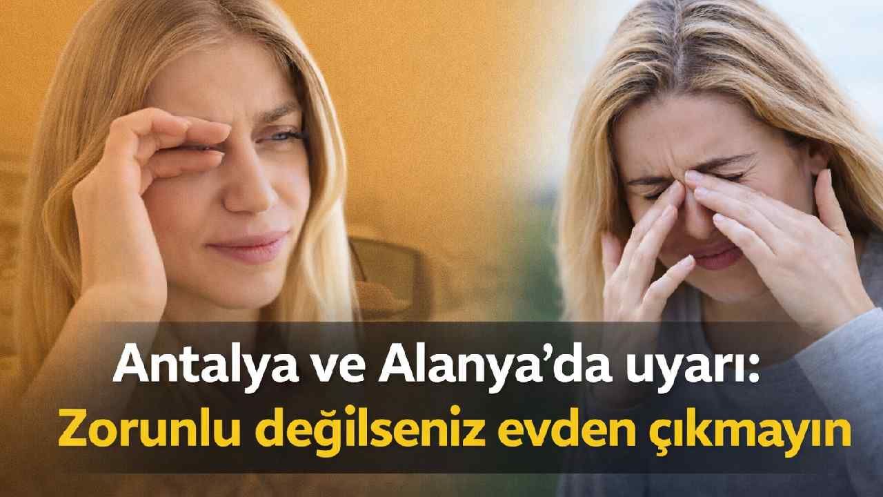 Alanya’da çöl tozu hava kirliliği etkisi özellikle astım, KOAH ve alerjik bünyeye sahip vatandaşlar için risk oluşturuyor. Uzmanlar, açık alanda uzun süre kalınmaması, zorunlu durumlarda maske ve koruyucu gözlük kullanılması gerektiğini belirtiyor.