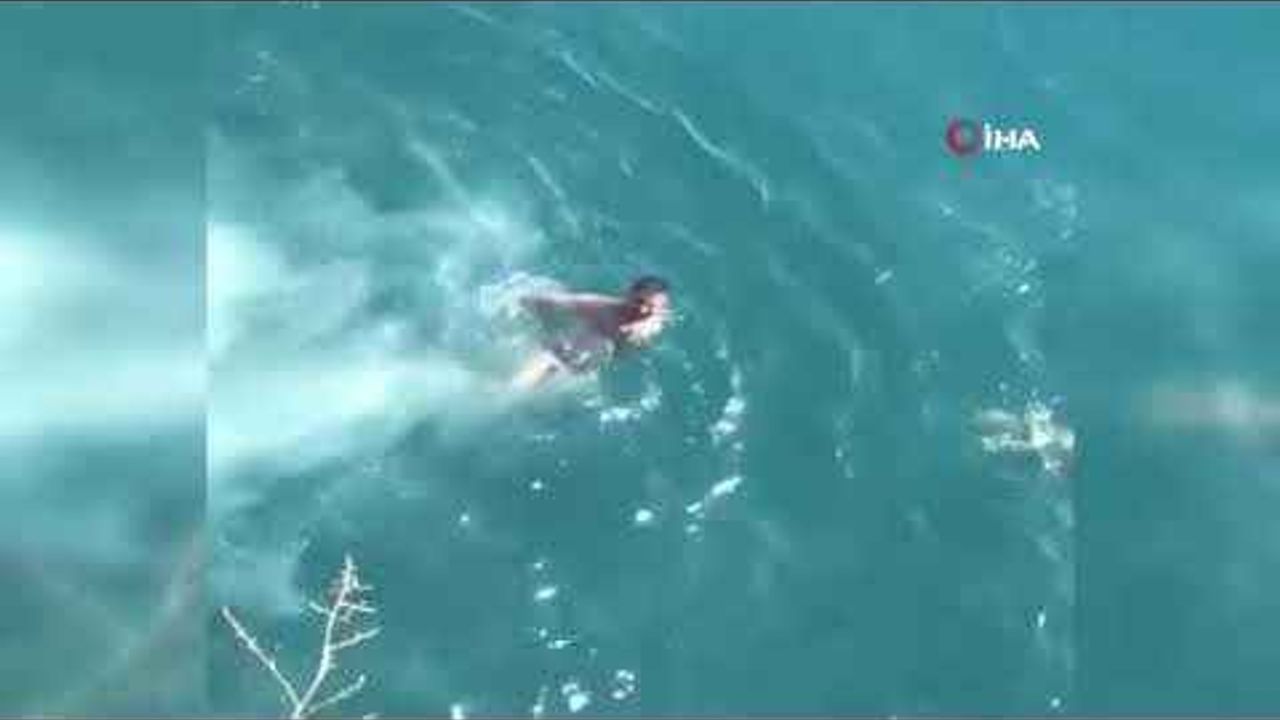 Antalya’da 20 metrelik falezlerden ‘kafayı yemişsiniz’ dedirten atlayış