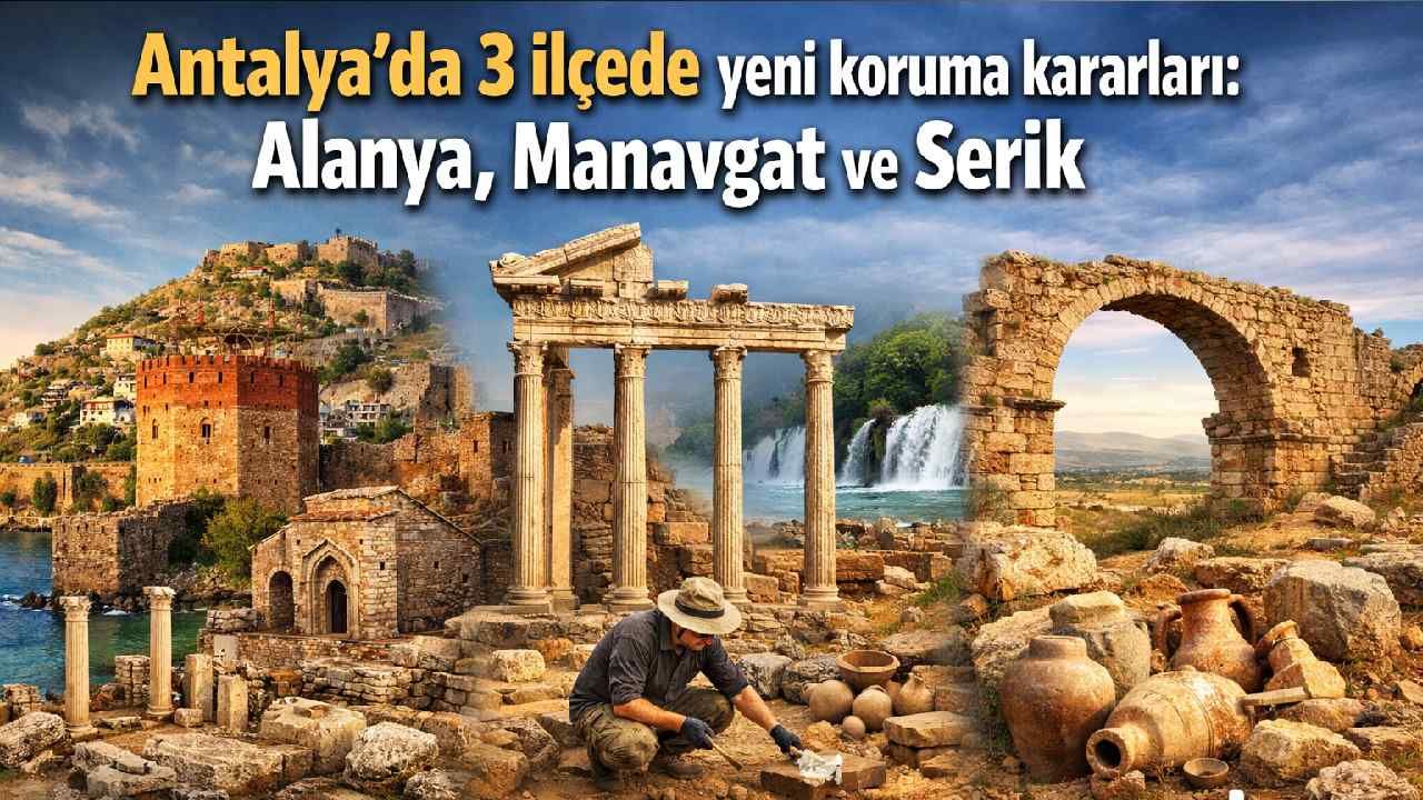 Antalya Kültür Varlıklarını Koruma Bölge Kurulu’nun 2026 kararları Resmî Gazete’de yayımlandı. Alanya, Manavgat ve Serik’te toplam 14 alan arkeolojik sit statüsüne alındı.