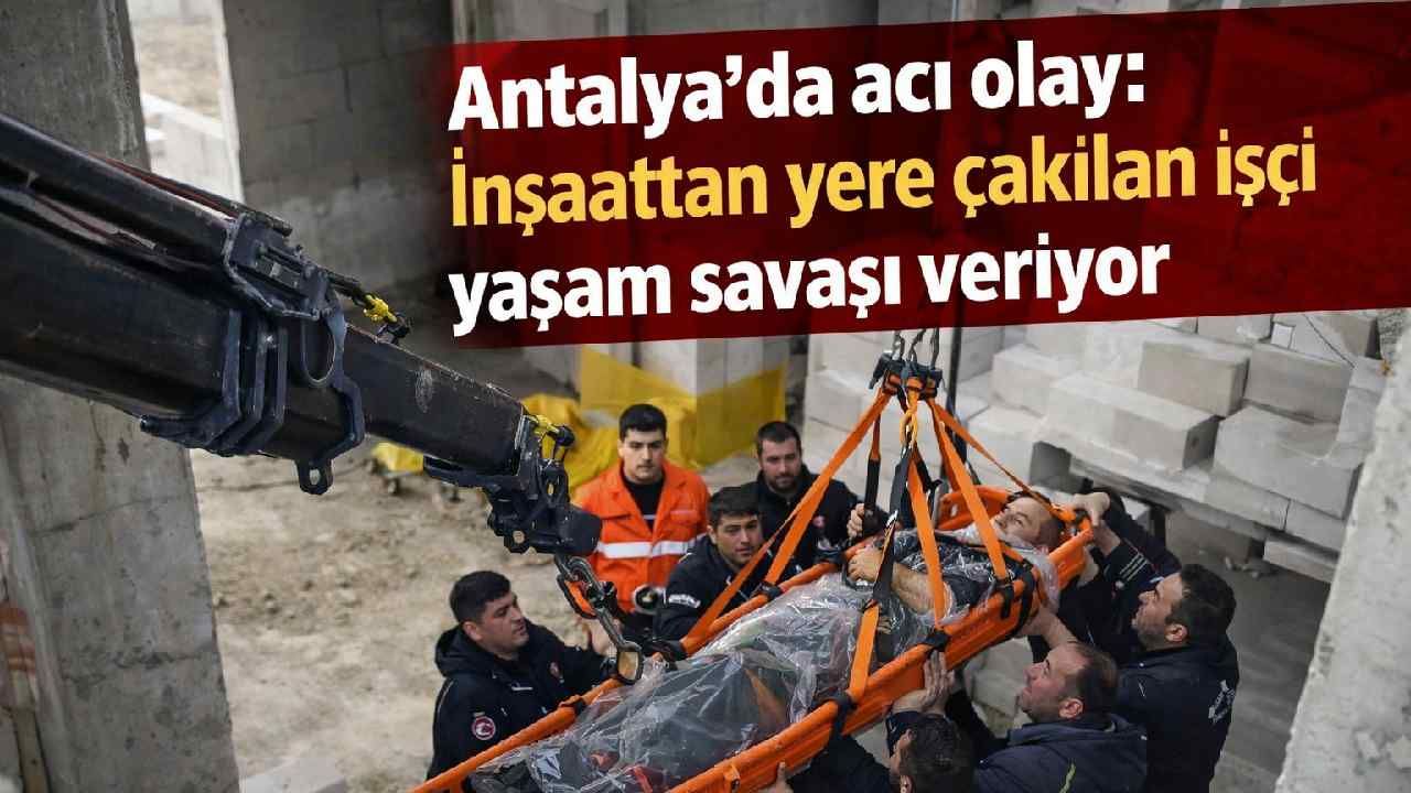 Antalya inşaatta düşme kazası sonrası ekipler yaralıyı sedyeye sabitledi. İnşaat alanının yapısı nedeniyle doğrudan taşıma mümkün olmayınca vinç desteği kullanıldı. Yaralı işçi kontrollü şekilde üst seviyeye çıkarıldı ve ambulansa alındı.