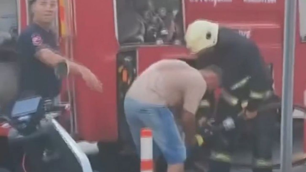 Antalya’da kendini yakmak isteyen bir vatandaş, üzerine döktüğü benzin gözlerini yakınca eyleminden vazgeçti. pic.twitter.com/VsM1IFf4K7