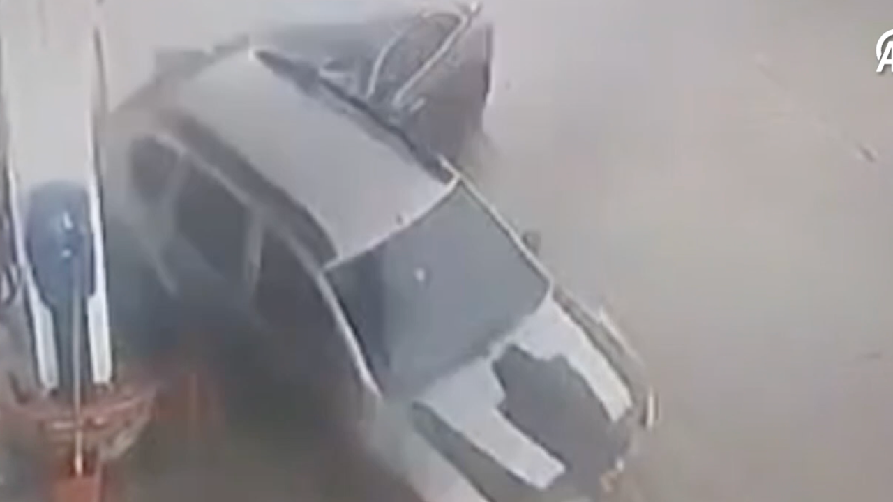 Yaralananın olmadığı kaza, akaryakıt istasyonunun güvenlik kamerasınca kaydedildi.
