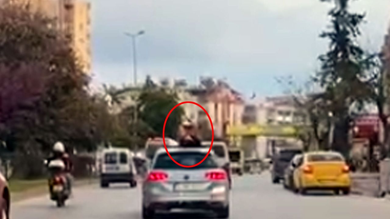 OLAY, Muratpaşa ilçesi üzerindeki Kızılırmak Caddesi üzerinde meydana geldi. Akşam saatlerinde trafikte ilerleyen otomobildeki kadın, aracın açılır tavan kısmından çıkarak, müzik eşliğinde dans etmeye başladı. Kadın, bir süre sonra bacaklarını da dışına çıkartarak dansa devam etti. Hem kendini hem trafiği tehlike atan kadının o anları, cep telefonuyla görüntülendi.