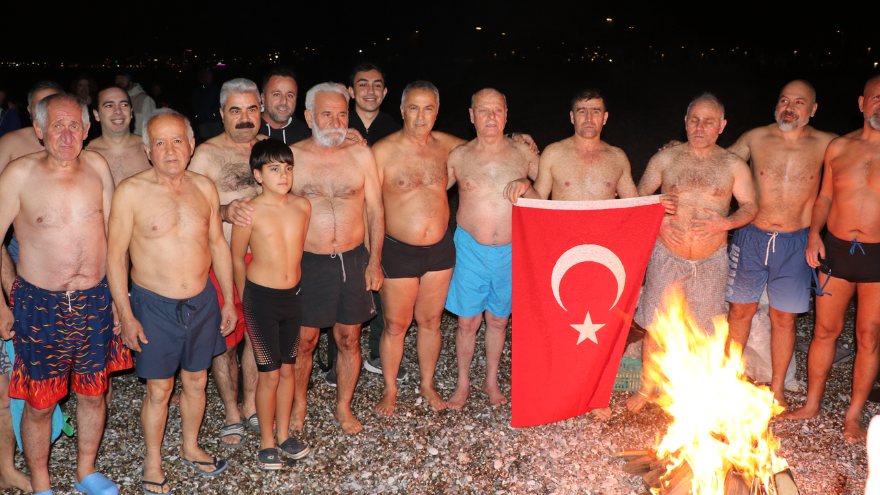 Yeni yılı denizde karşılayanlardan İsmail Çankaya, “Her gün sabah saat yedide denize giriyoruz. Yeni yılı da denizde karşıladık. Su çok güzel, ılık, herkesin yeni yılı kutlu ve mutlu olsun” dedi.