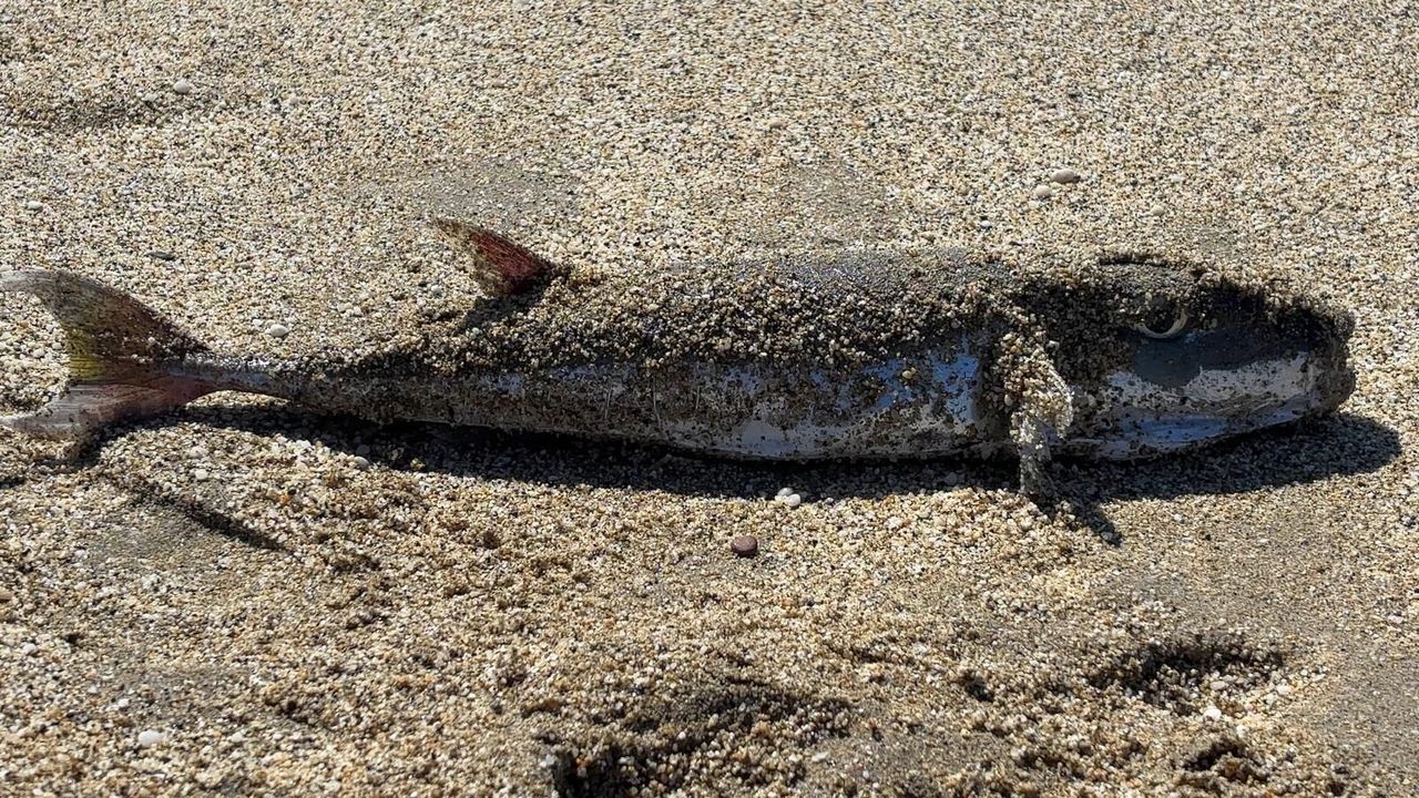 KLEOPATRA Plajı'nda yaklaşık 50 santimetre uzunluğundaki bir balon balığı kıyıya vurmuş halde bulundu. Zehirli olduğu bilinen, dokunulmaması ve tüketilmemesi gerektiği konusunda sık sık uyarılar yapılan balığın kıyıda bulunması çevredeki vatandaşlarda endişe yarattı.