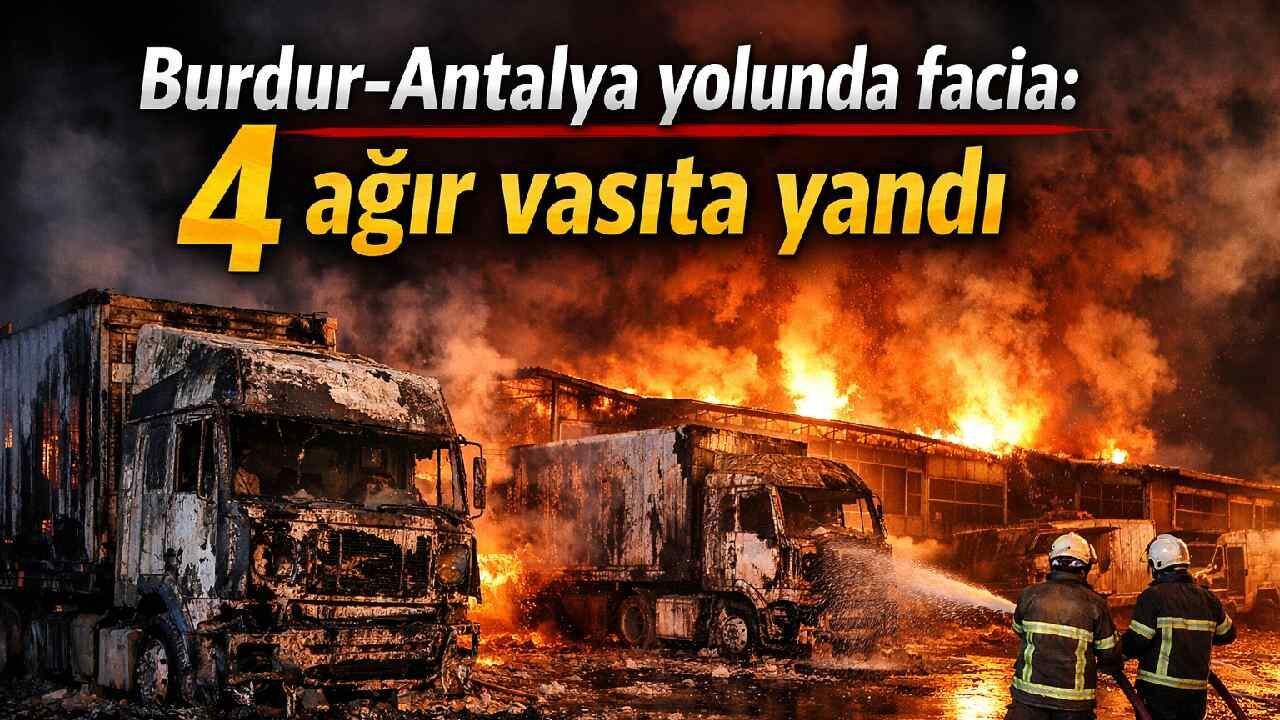 Bucak’ta sabaha karşı çıkan yangın, ağır vasıta servisini tamamen kullanılamaz hale getirdi. Alevler kısa sürede büyüdü, 4 araç zarar gördü.
