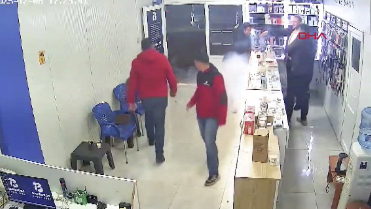 İşyerine tamir için getirilen cep telefonunun bataryası, tamir ustası Zeynel Abidin Ertaş tarafından incelendiği sırada patlayarak alev aldı. Ertaş, telefonu işyerinden uzaklaştırmaya çalışırken, içerisi dumanla kaplandı. Olayda yaralanan olmazken, o anlar işyerinin güvenlik kamerasına yansıdı.