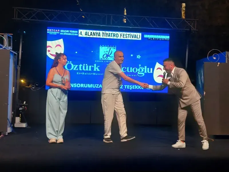 DİM Medya’nın basın sponsoru olduğu 4. Alanya Tiyatro Festivali, yüzlerce sanatseverin katıldığı kortej yürüyüşü ile başladı. Açılış seremonisinde tiyatroseverler alanı doldururken, festivalin gerçekleşmesinde katkılarından dolayı DİM Medya adına Mazlume Göktaş’a plaket takdim edildi. Rüzgar Cafe & Bar & Restaurant sahibi Selçuk Torun’un ana sponsorluğunda düzenlenen festival, Kızılkule Sanat Meydanı başta olmak üzere şehrin farklı noktalarında tiyatroseverlerle buluşacak. Festival programında Tamer Levent, Tarık Papuççuoğlu, Emine Ün, Ruhi Sarı, Hazım Körmükçü, Şahin Örgel, Elif Çelik ve İlker Kalay gibi ünlü isimler sahne alacak. Etkinliklerin tamamı halka ücretsiz olarak sunulacak.