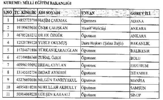 689 sayılı KHK ile görevine iade edilen personelin tam listesi