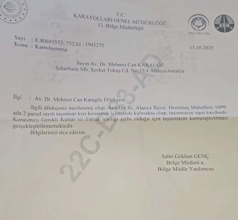 CHP Alanya İlçe Sekreteri ve Avukat Mehmet Can Karagöz, sosyal medya hesabından yaptığı paylaşımda Demirtaş Kavşağı projesinin hukuka aykırı şekilde yürütüldüğünü ileri sürdü. Karagöz, söz konusu alanın tapusunda "Korunması Gerekli Kültür ve Tabiat Varlığı" şerhi bulunduğunu belirterek, buna rağmen kamulaştırma yapılmadan inşaata devam edildiğini iddia etti.