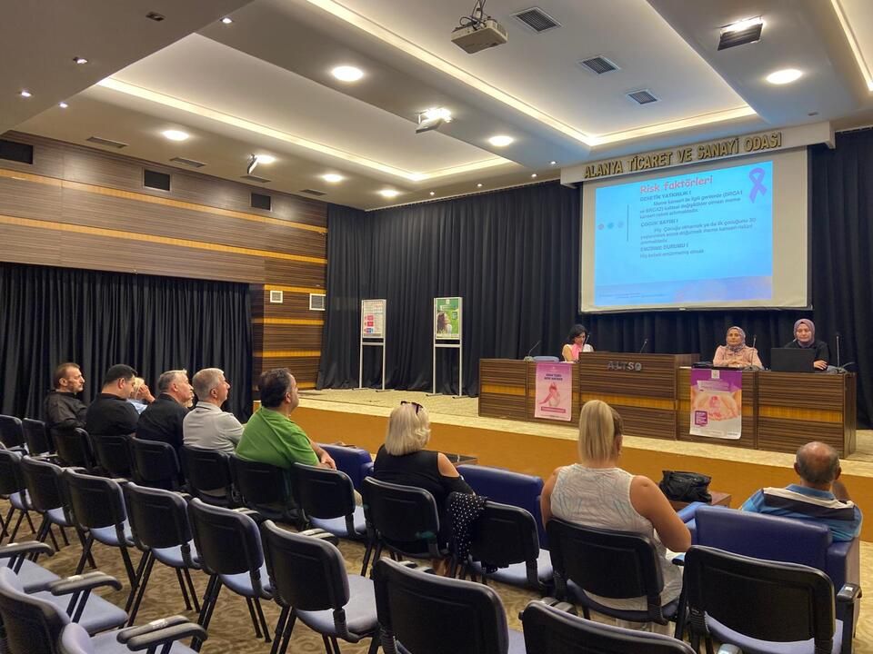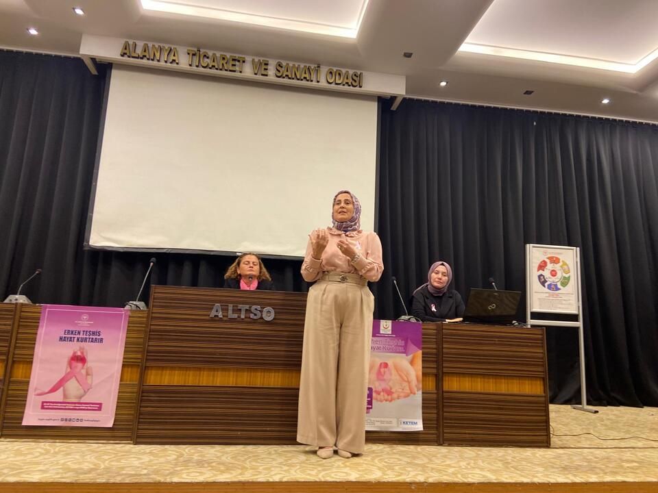Şehit Ebe Zeynep Eser Sağlıklı Hayat Merkezi (KETEM) Hemşiresi Nurhayat Demirhan, Ekim ayının meme kanserinde farkındalık ayı olmasından dolayı Alanya Ticaret ve Sanayi Odası Başkanı Eray Erdem, (DOSDER) Dernek Başkanımız Şafak Kuru VE Sivil Toplum Örgütleriyle birlikte bugün güzel bir seminere imza atmak istiyoruz. Şehit Ebe Zeynep Eser Sağlıklı Hayat Merkezinde ücretsiz ne hizmetler veriyoruz bunlardan bahsedeceğiz” ifadelerini kullandı. (Hatice NERGİZ)