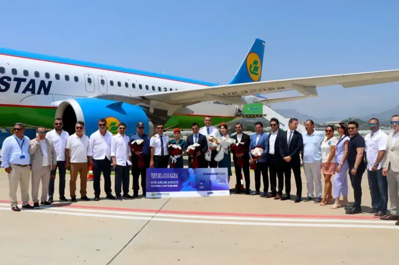 Özbekistan’ın başkenti Taşkent’ten kalkan Uzbekistan Airways'e ait ilk direkt uçak, 156 yolcusuyla Gazipaşa-Alanya Havalimanı’na (GZP) tarihi bir iniş yaptı. Su takı seremonisi ve çiçeklerle karşılanan seferin ardından, yaz sezonu boyunca 26 uçuşla 4 bin 300 Özbek turistin bölgeye gelmesi hedefleniyor.