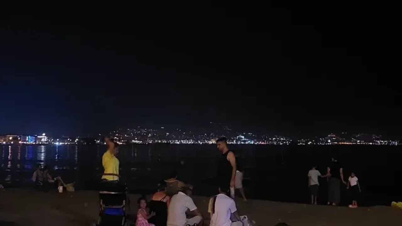 Alanya’da akşam saatlerinde de etkisini sürdüren bunaltıcı sıcaklardan kaçan vatandaşlar, serinlemek için Halk Plajı’na akın etti