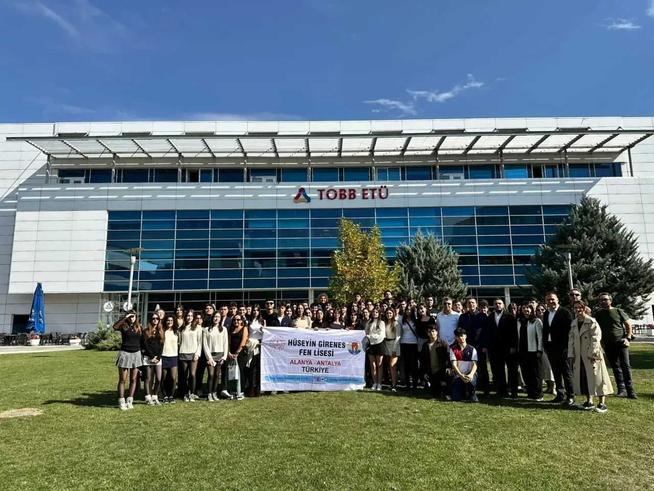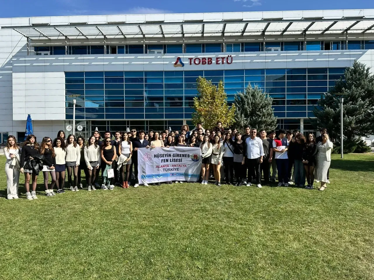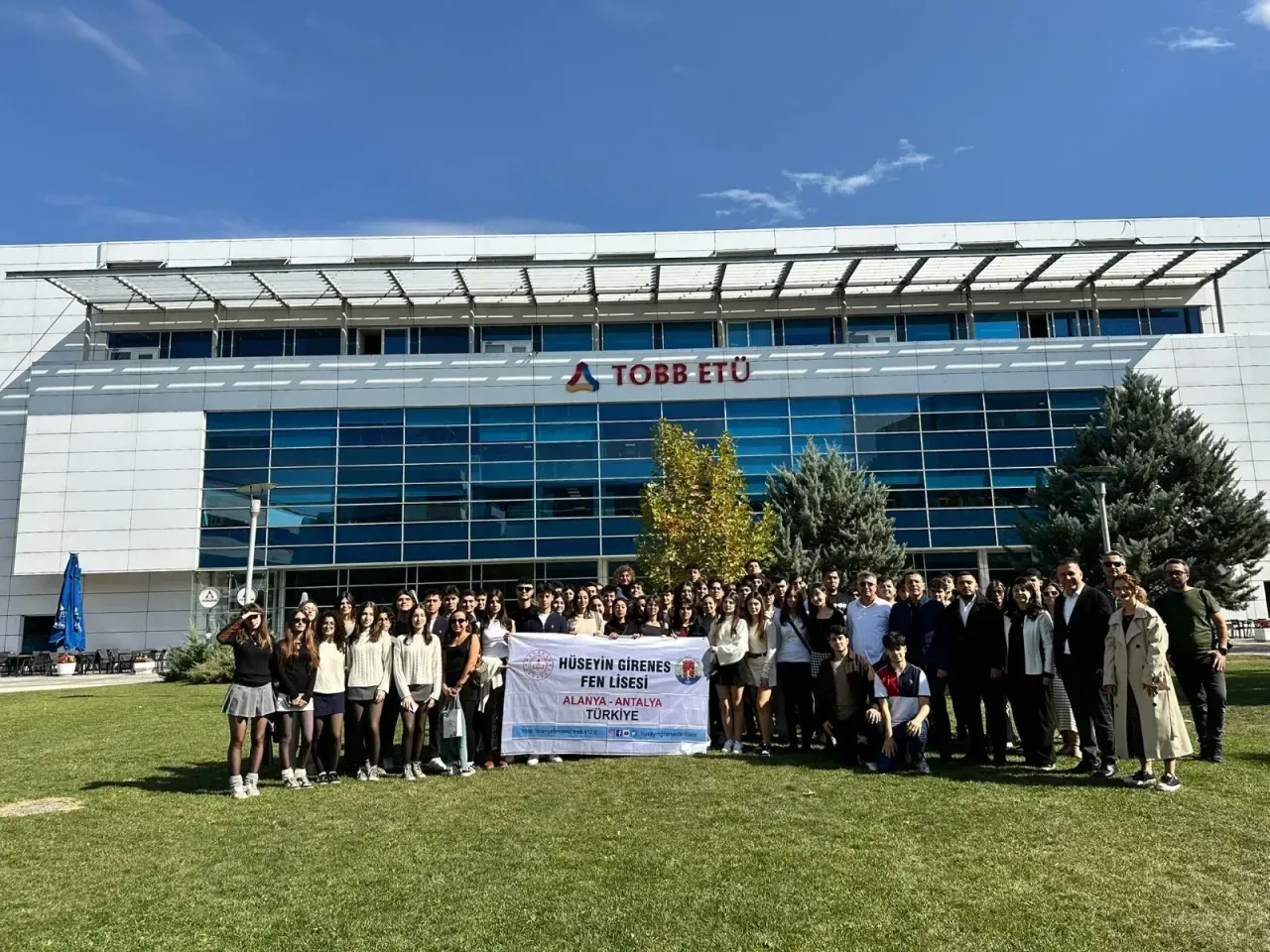 ALANYA'NIN sevilen ismi hayırsever Hüseyin Girenes tarafından Alanya'ya kazandırılan ve başarılarıyla Alanya'nın yüzakı olan fen lisesi öğrencilerinin motivasyonunu artırmak ve üniversite vizyonlarını genişletmek amacıyla her yıl düzenli olarak gerçekleşen Ankara Üniversiteleri Tanıtım Gezisi'nde öğrenciler, Türkiye’nin öncü eğitim kurumlarından biri olan TOBB Ekonomi ve Teknoloji Üniversitesi'ni ziyaret etti. Ziyarete, hayırseveri olduğu okulla her an yakından ilgilenen Hüseyin Girenes de katıldı. Ziyaret kapsamında okul heyeti Üniversite Rektörü Prof. Dr. Yusuf Sarınay tarafından özel olarak ağırlandı. Rektör Sarınay, lise düzeyinde ilk defa bir öğrenci grubuna hitap ederek üniversite hakkında kapsamlı bir sunum gerçekleştirdi. Öğrencilerin yoğun ilgisiyle karşılanan bu özel sunum, hem üniversitenin akademik yapısını hem de bilimsel projelerini yakından tanıma fırsatı sundu. Program, üniversitenin hazırladığı samimi bir karşılama ve ikram etkinliğiyle başladı. Ardından Prof. Dr. Yusuf Sarınay’ın yaptığı bilgilendirici sunumda TOBB ETÜ’nün eğitim modeli, girişimcilik kültürü, uygulamalı eğitim sistemi ve uluslararası başarıları hakkında detaylı bilgiler paylaşıldı.