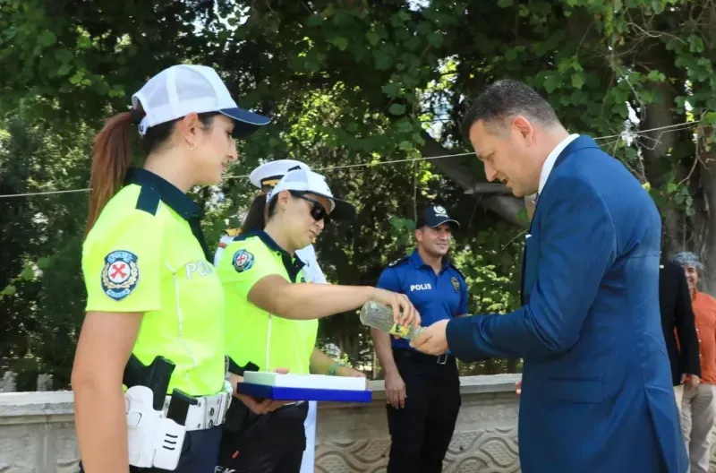 ALANYA'DA Kurban Bayramında trafik denetimleri devam ediyor. Kaymakam Ürkmezer, Alanya Belediye Başkanı Osman Tarık Özçelik, İlçe Jandarma Komutanı Binbaşı Hüseyin Direk, İlçe Emniyet Müdürü Murat Kenan Patat ve Sahil Güvenlik Komutanı Binbaşı Erdinç ile birlikte Alantur uygulama noktasını ziyaret ederek hem denetimleri yerinde inceledi hem de sürücülere uyarılarda bulundu. Uygulamada Kaymakam Ürkmezer ve bererindekiler uygulama noktasında durdurulan araçlardaki vatandaşlarla sohbet ederek bayramlarını tebrik etti. Ekipler tarafından sürücülere ve yolculara çikolata ve kolonya ikram edilerek hayırlı yolculuklar temennisinde bulunuldu.